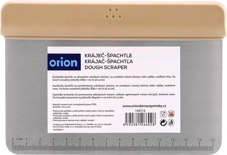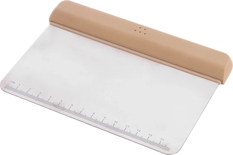 De schraper verdeelt moeiteloos deeg, verplaatst gesneden stukken, strijkt crèmes glad en kan zelfs noten of groenten hakken op het werkblad.
