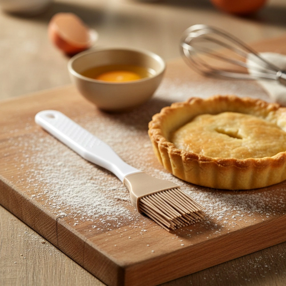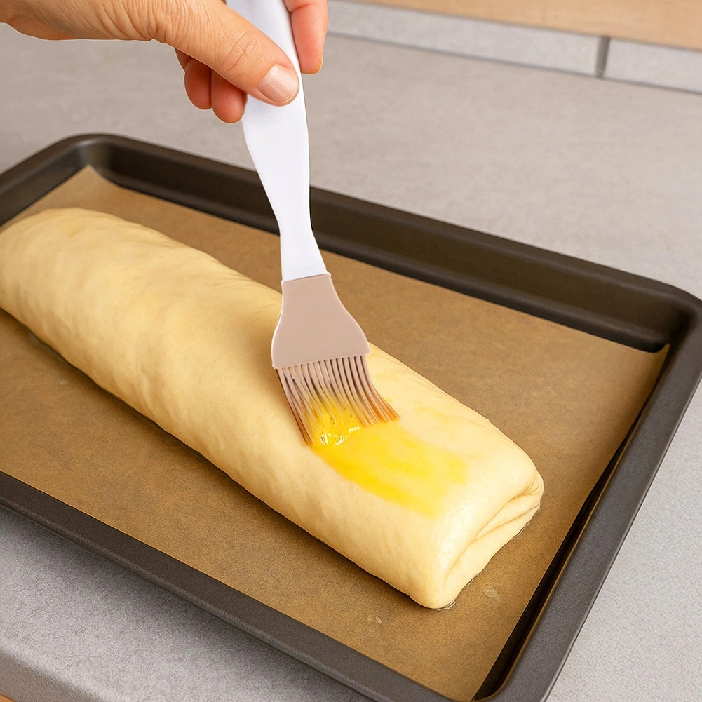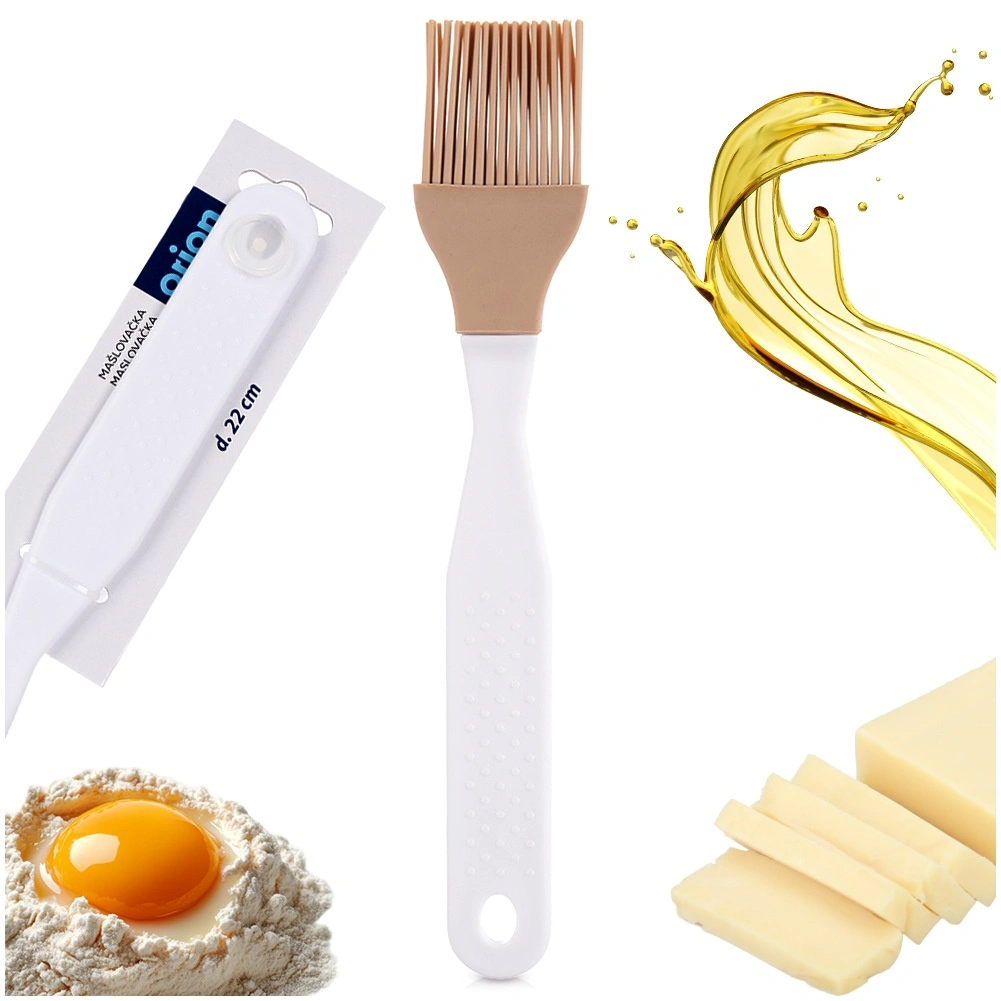 Fijne en veerkrachtige siliconen haren verdelen olie, eidooier of sauzen gelijkmatig over gebak, vlees en bakvormen zonder het oppervlak te beschadigen.