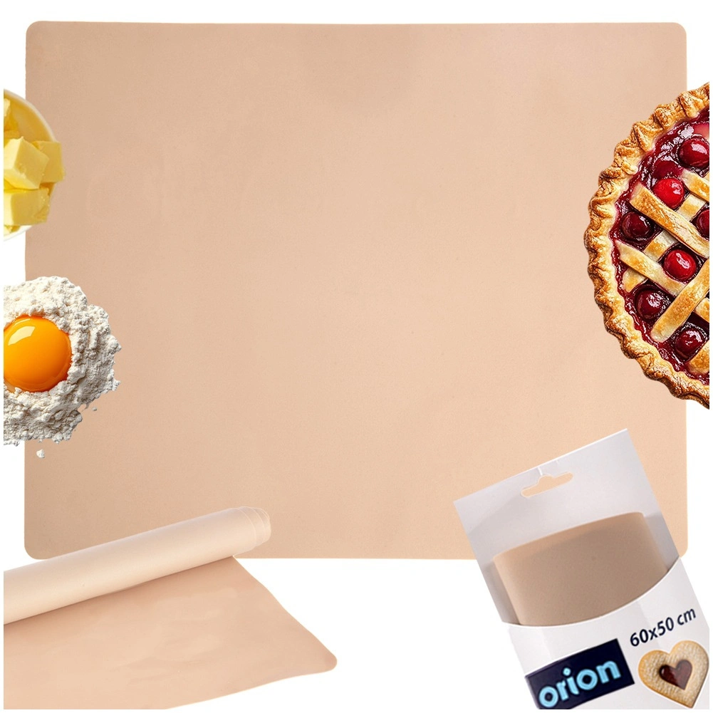 Praktische siliconen werkmat van 60 × 50 cm voor comfortabel kneden en uitrollen van deeg. Biedt een antiaanbakoppervlak, antislipstabiliteit en temperatuurbestendigheid van -40 tot +220 °C. Gemakkelijk te reinigen, herbruikbaar en op te rollen voor ruimtebesparing.