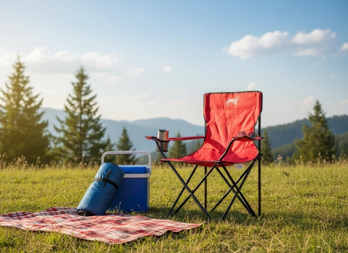 Voor maximaal comfort is de stoel uitgerust met een geïntegreerde bekerhouder in de armleuning. Licht, draagbaar en veelzijdig – ideaal voor kamperen, vissen, festivals, strand, tuin of sportevenementen.