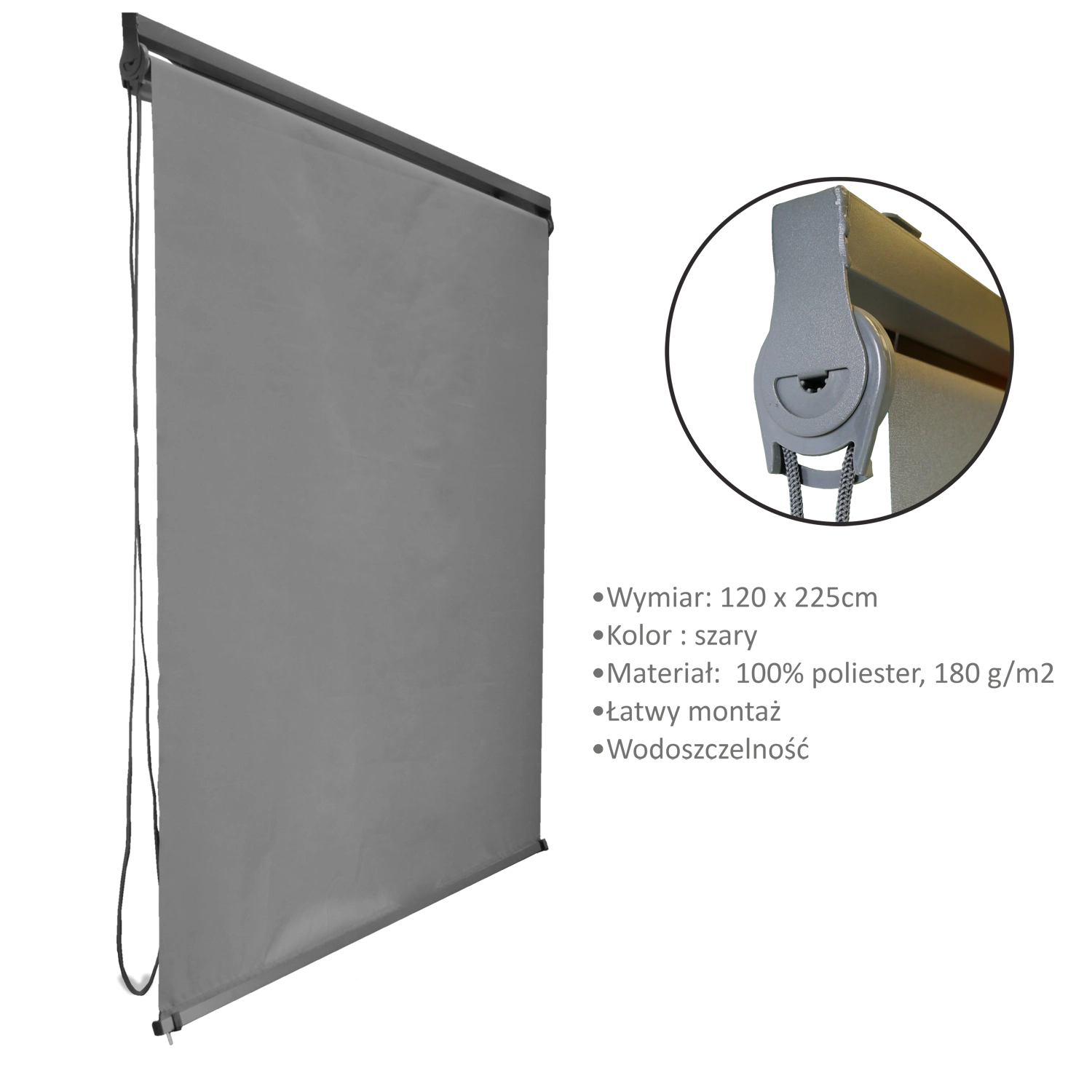Dit buitenrolgordijn is een ideale oplossing voor pergola’s, terrassen en tuinprielen. De stevige polyesterstof in een stijlvolle grijze kleur filtert zonnestralen doeltreffend en helpt een aangename temperatuur te behouden, zelfs op warme dagen.