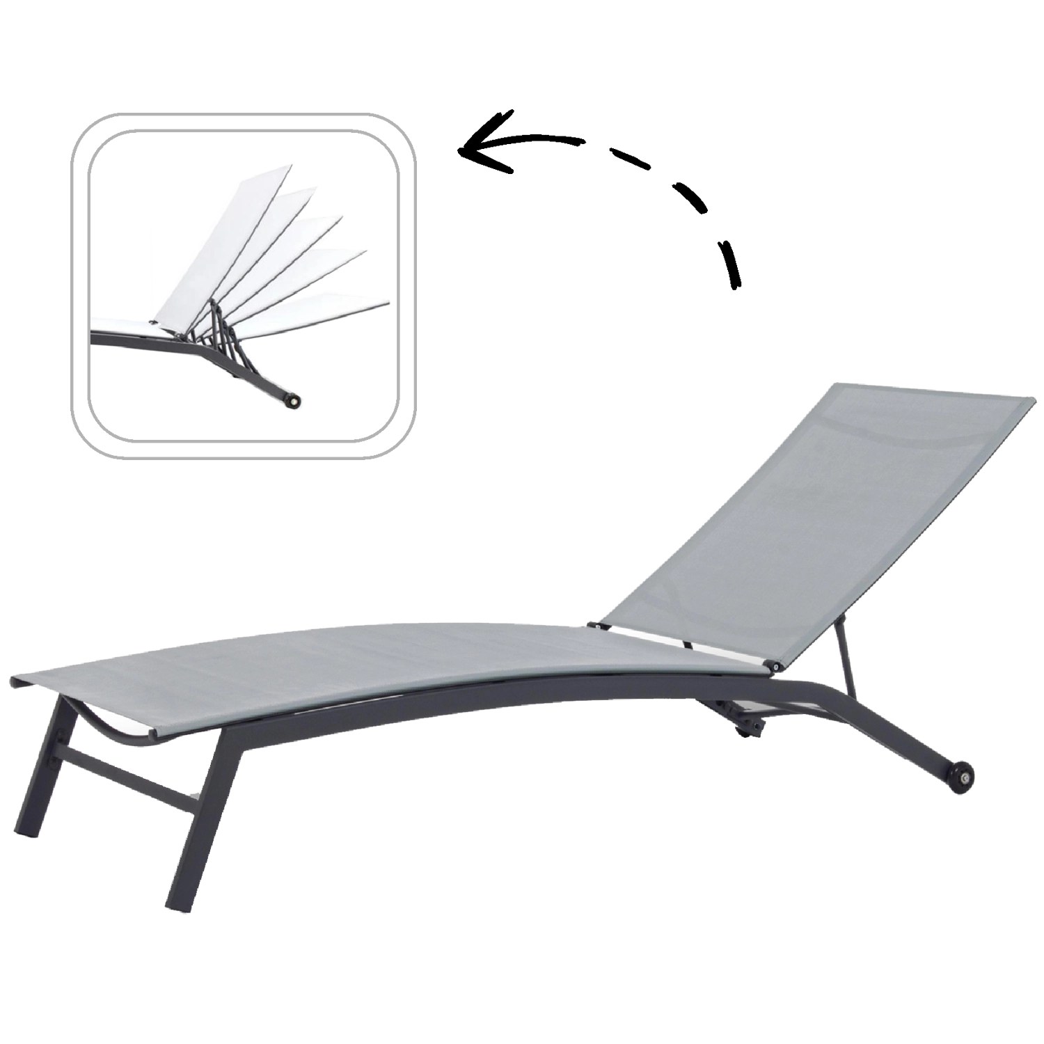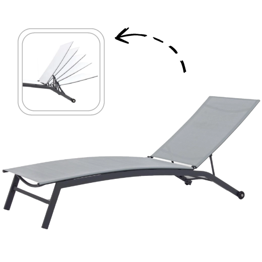 Geniet van welverdiende ontspanning buiten met dit stijlvolle grijze tuinligbed. Dankzij de verstelbare rugleuning en de optie voor een volledige ligstand vind je moeiteloos de ideale positie. De duurzame Textilene-stof en het stalen frame met poedercoating garanderen een lange levensduur, zelfs bij gebruik gedurende het hele seizoen.