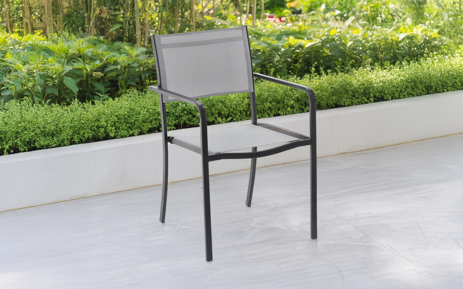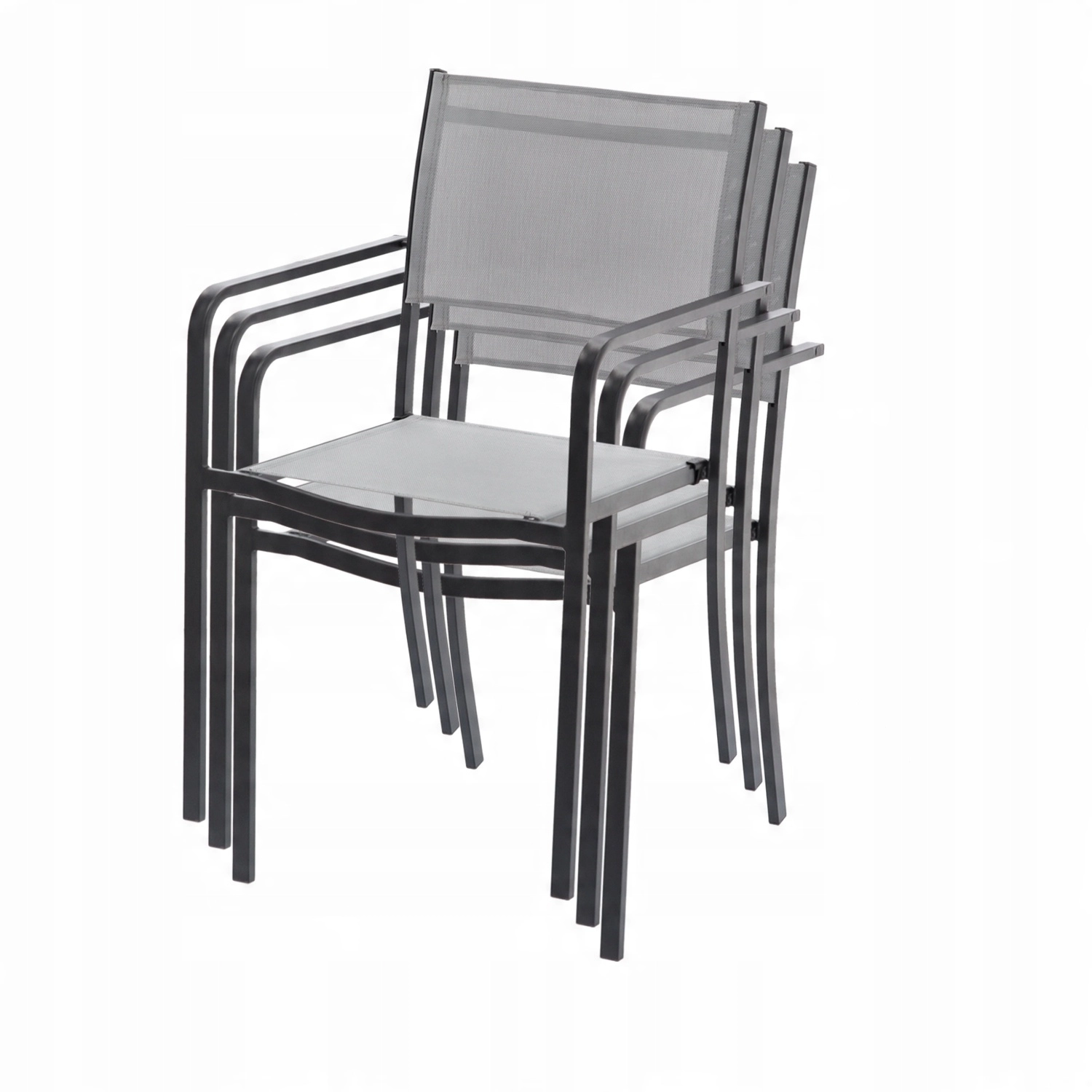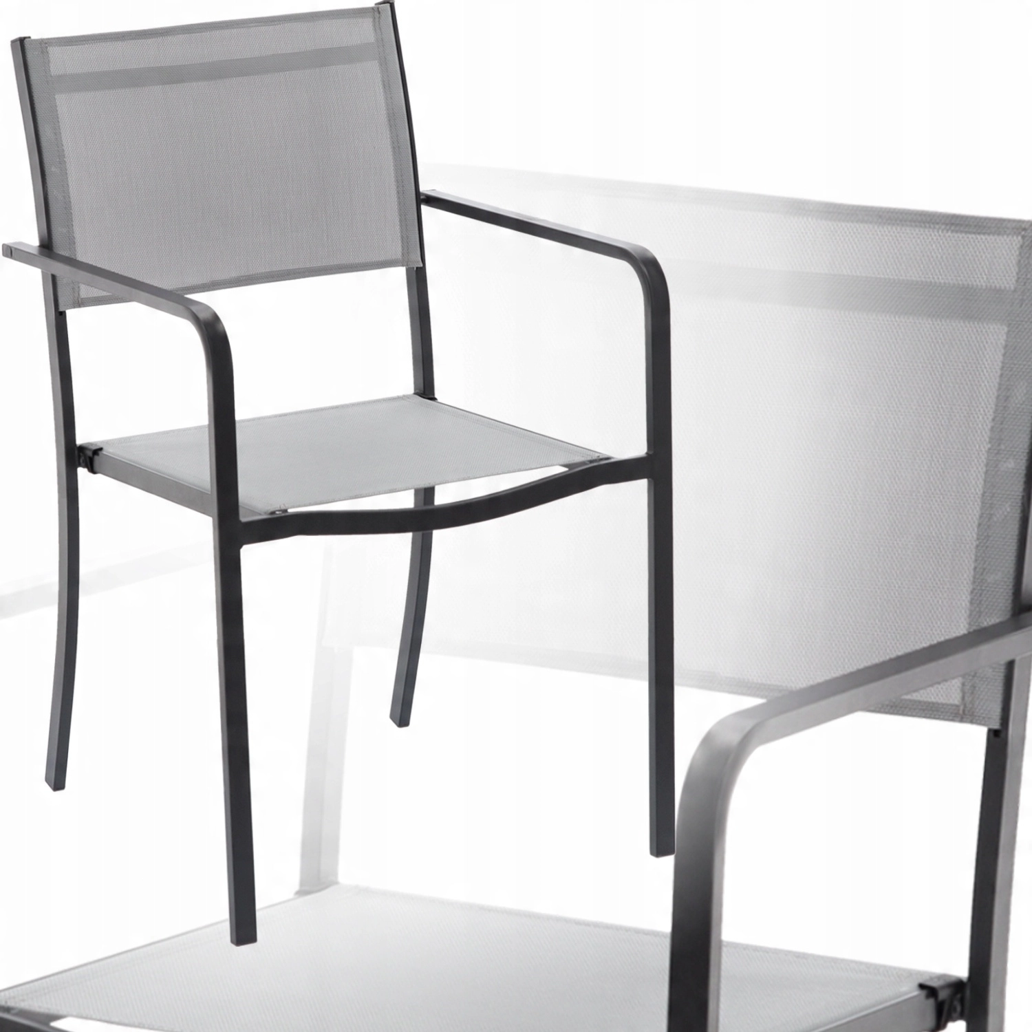 De grijze tuinstoel is een ideale keuze voor het terras, balkon en ook voor cafés en buitenterrassen van restaurants. De zitting en rugleuning van ademend textilene 2×1 bieden comfort, zelfs op warme dagen, terwijl het hoogwaardige stalen frame met poedercoating zorgt voor een lange levensduur en weerstand tegen weersinvloeden.