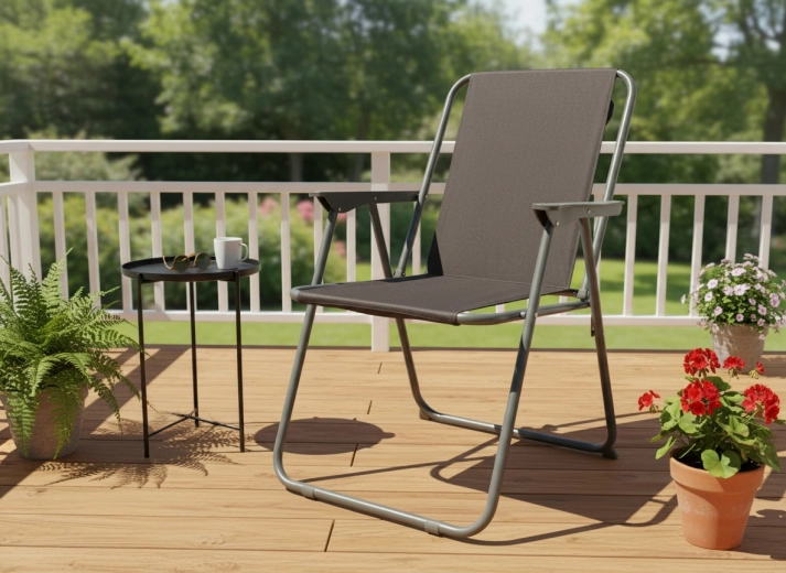De stoel vouw je in een moment op en berg je moeiteloos op het balkon, in de kelder of in de garage op. Ideale oplossing voor kleinere ruimtes en seizoensgebruik.