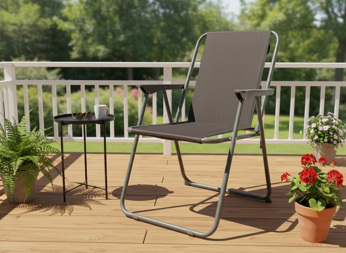 Geniet van ontspanning in de buitenlucht met een stoel die functionaliteit, duurzaamheid en tijdloos design combineert. De neutrale grijze tint past in elke omgeving en maakt je buitenzitje compleet. Dankzij het vouwmechanisme is eenvoudige opslag en transport mogelijk, zodat je haar kunt gebruiken op het terras, in de tuin en op de recreatiewoning.