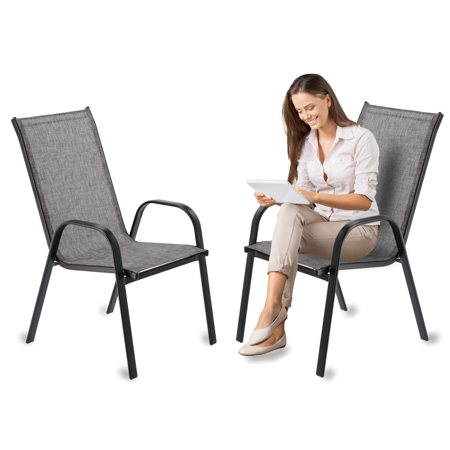 Dankzij de stapelfunctie bespaar je ruimte bij het opbergen. De stoelen zijn licht maar toch zeer stabiel, waardoor je ze gemakkelijk verplaatst naar waar je ze nodig hebt – terras, balkon of tuin.