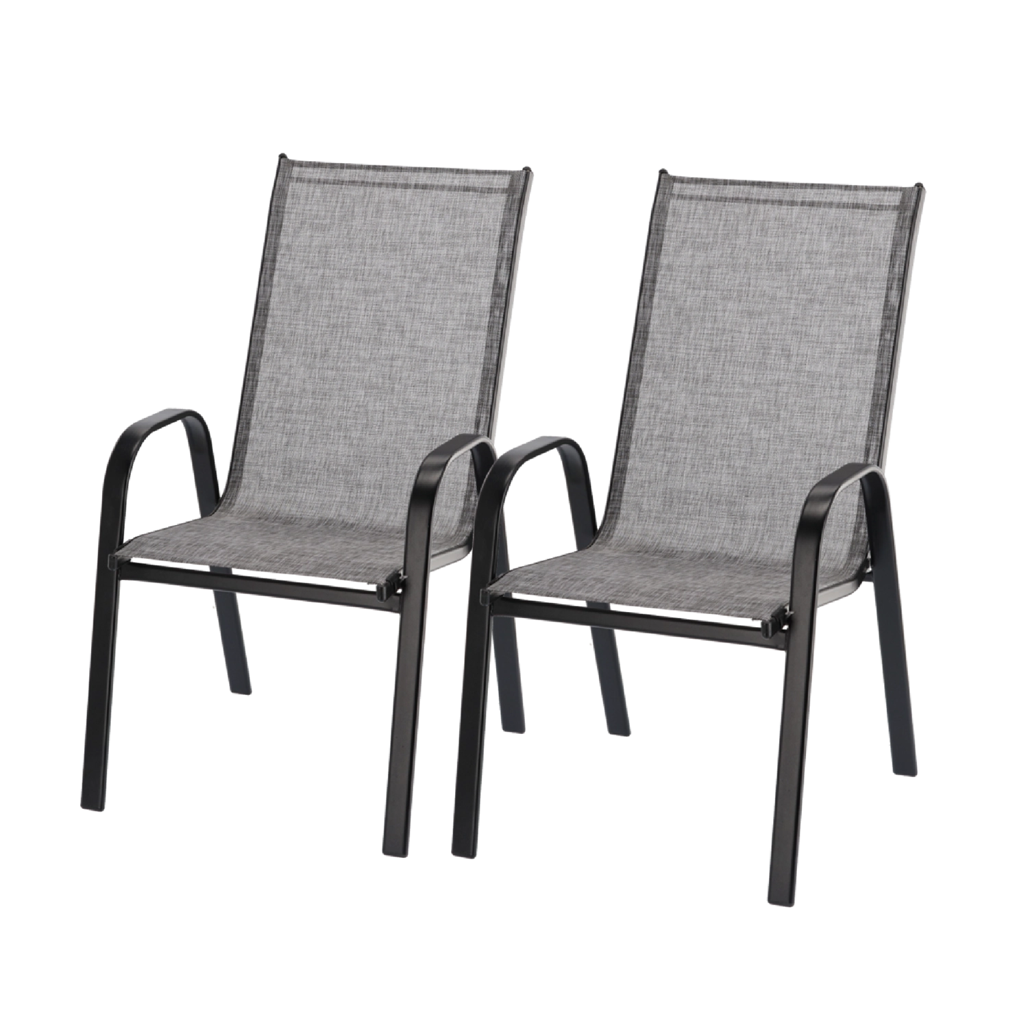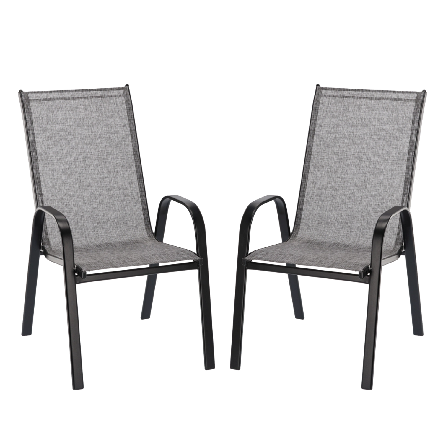 Elegante set van twee GARDENLINE-tuinstoelen die klassiek design, modern grijs textilene en een duurzaam stalen frame met poedercoating combineert. Biedt comfortabele armleuningen, is stabiel en licht en dankzij de mogelijkheid tot stapelen eenvoudig buiten het seizoen op te bergen. Ideaal voor terras, balkon en tuin.