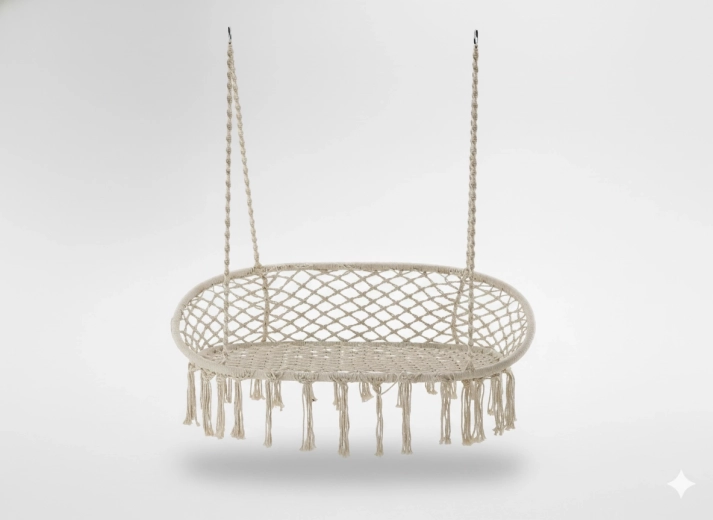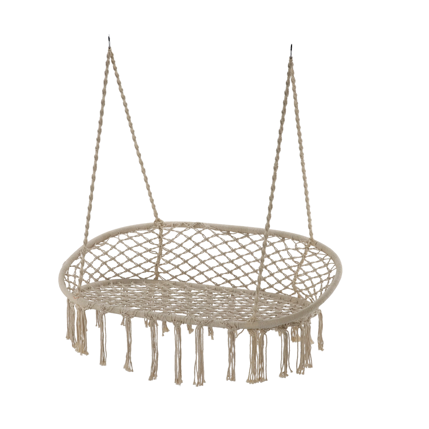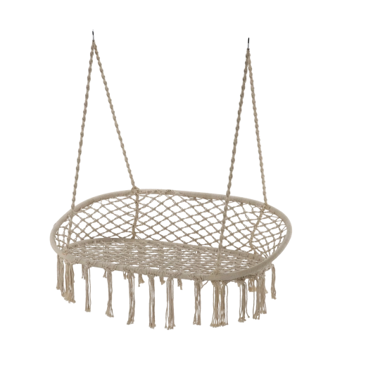 Creëer je eigen oase van rust met deze ruime dubbele hangstoel in beige. Biedt uitzonderlijk comfort voor twee, een stevige stalen constructie en een draagvermogen tot 300 kg. Het tijdloze, natuurlijke uiterlijk past perfect in elke tuin, op elk terras en in elk interieur.