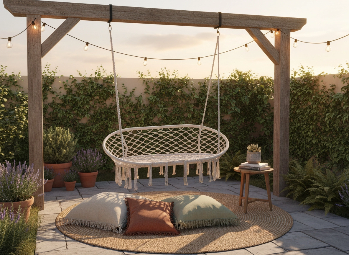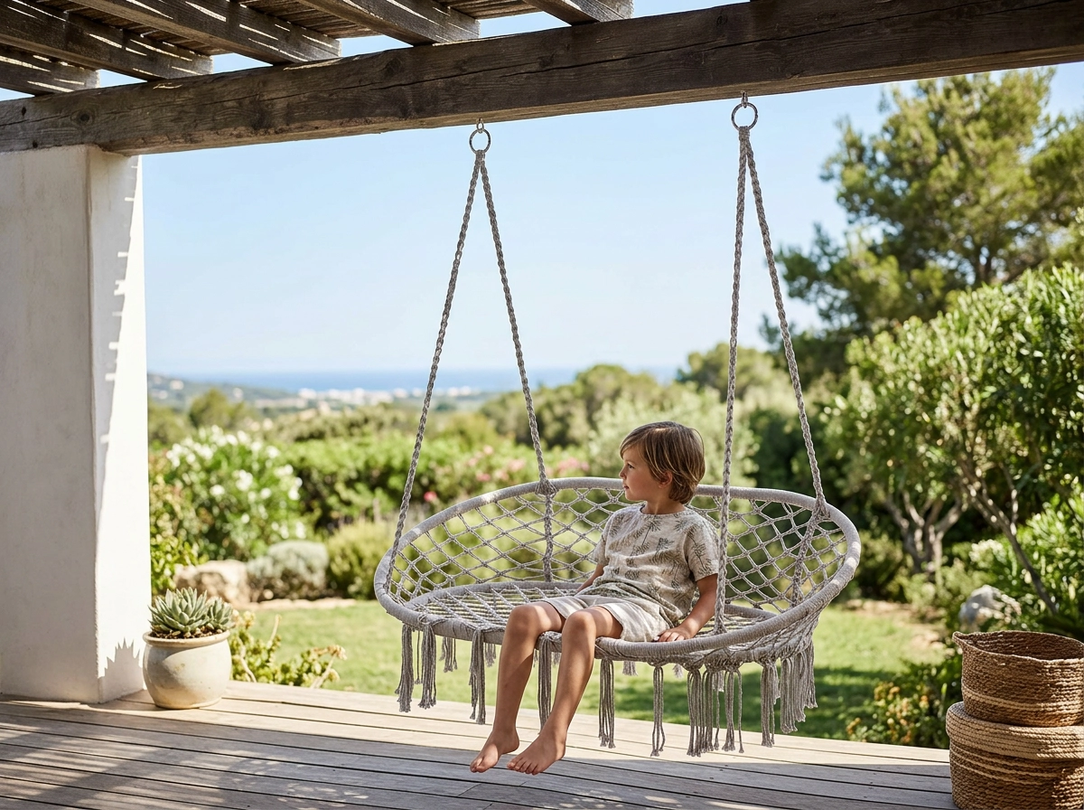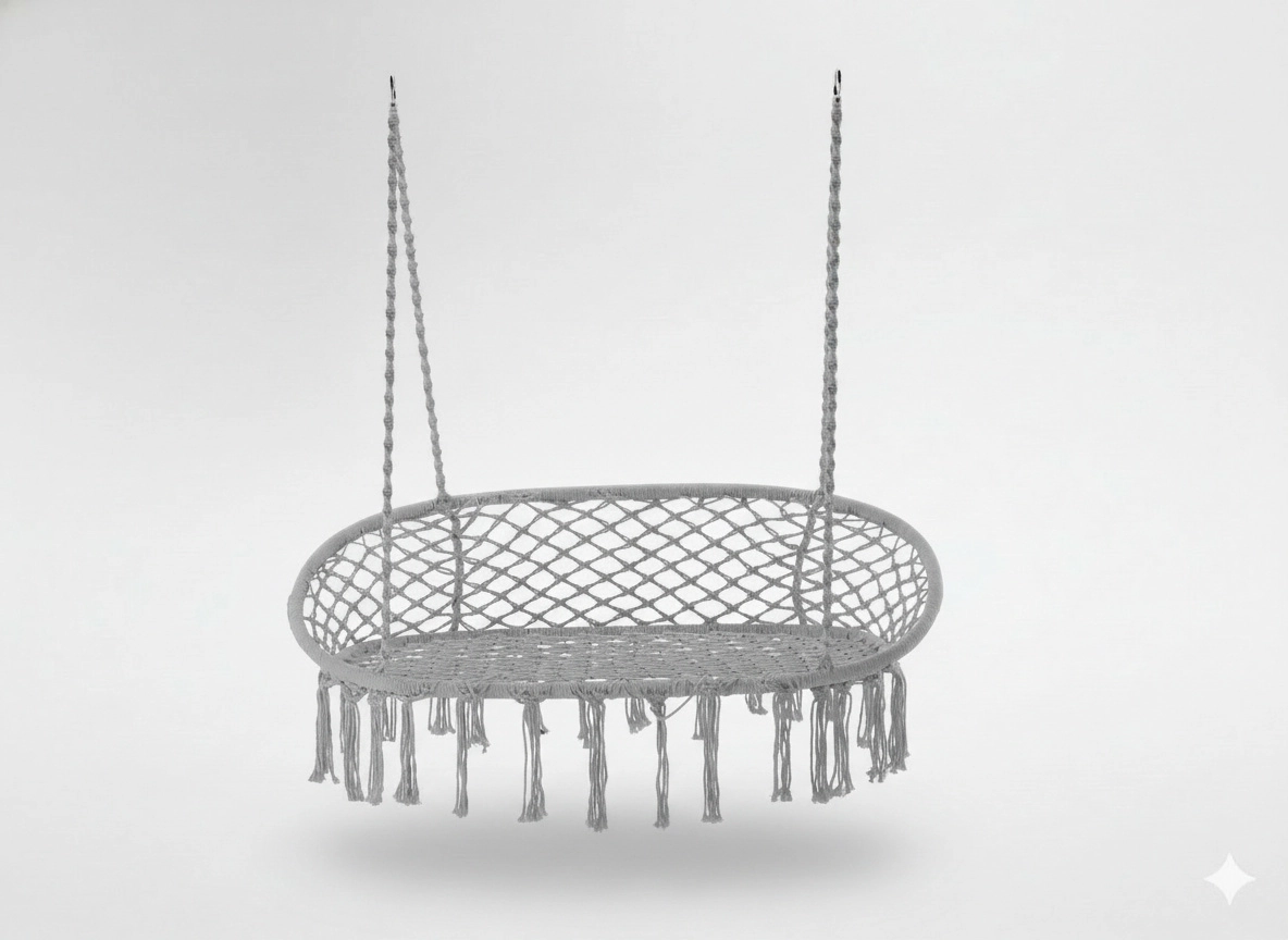 De brede rugleuning van 130 × 73 cm en een draagvermogen tot 300 kg geven zekerheid, ook bij samen zitten. Dankzij de tijdloze afwerking laat de stoel zich gemakkelijk combineren met zowel moderne als bohostijl, binnen én buiten.