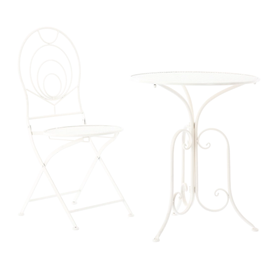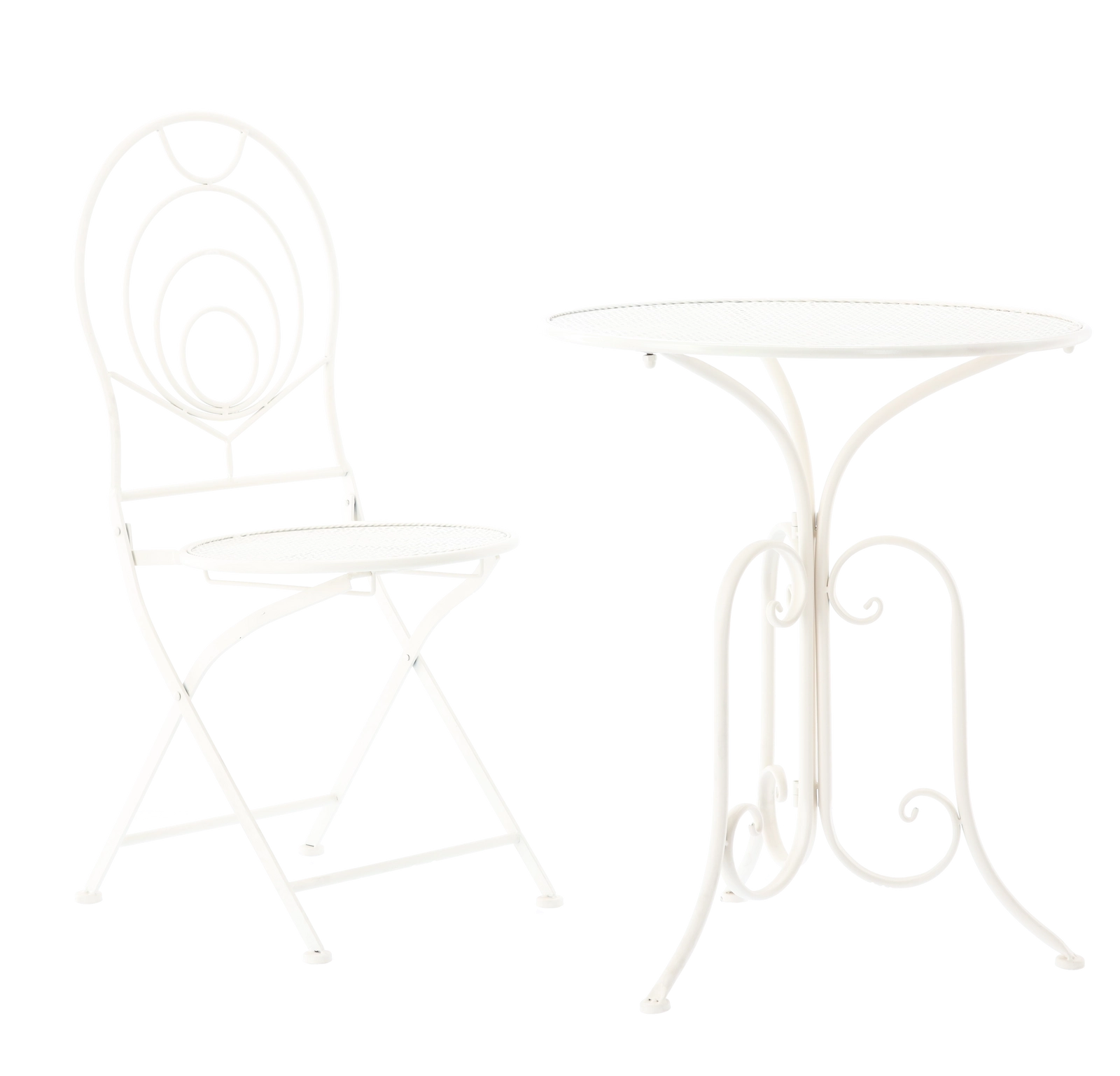 Gedecoreerde metalen details en de zuiver witte kleur geven balkon, terras en tuin een verfijnde bistro-uitstraling die eenvoudig te combineren is met accessoires.