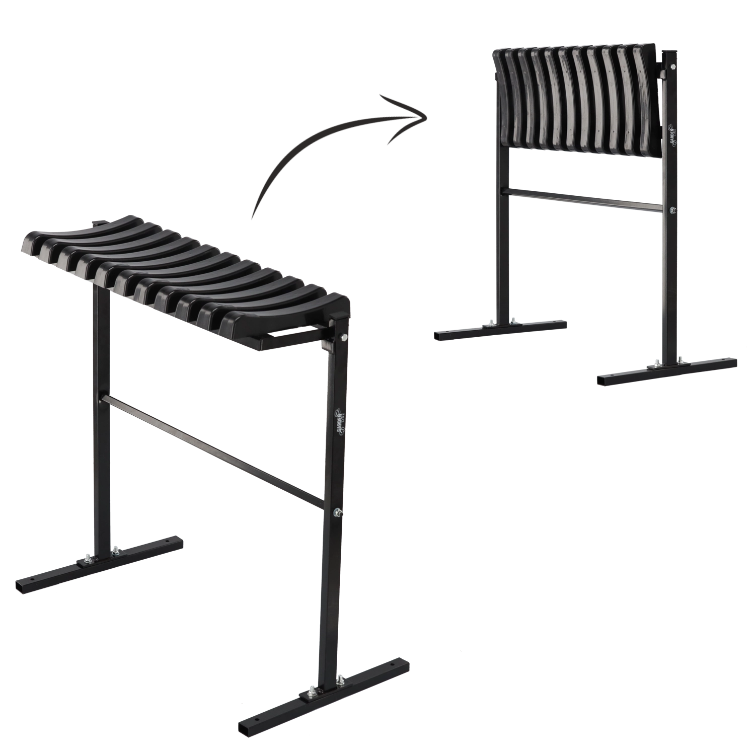 Deze opklapbare begraafplaatsbank in elegant zwart is ontworpen voor een lange levensduur en veilig gebruik. De zitting kan in een oogwenk worden opgeklapt, wat zorgt voor een schoon oppervlak en ruimtebesparing. Dankzij de stalen constructie en profielen om vast te schroeven kunt u hem eenvoudig en stevig verankeren op klinkers of betontegels.