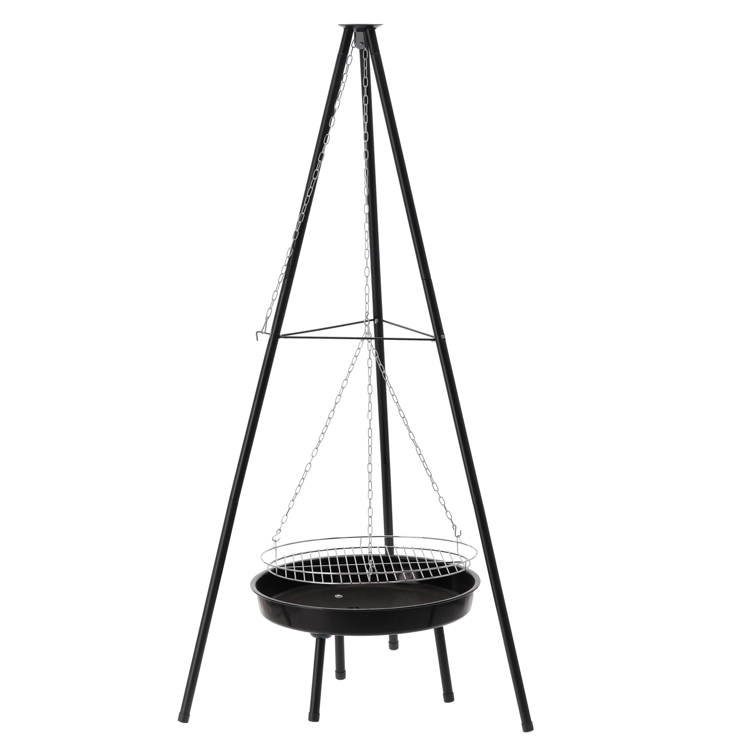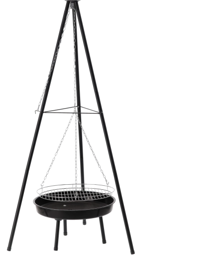 Het lichte maar verstevigde driepootframe biedt stabiliteit in de tuin, bij de blokhut en op de camping. De eenvoudige constructie is snel op- en af te bouwen, ideaal voor weekendactiviteiten en seizoensgebruik. Probeer klassiekers – steaks, worsten, maïs en groenten – met de kenmerkende smaak van open vuur.