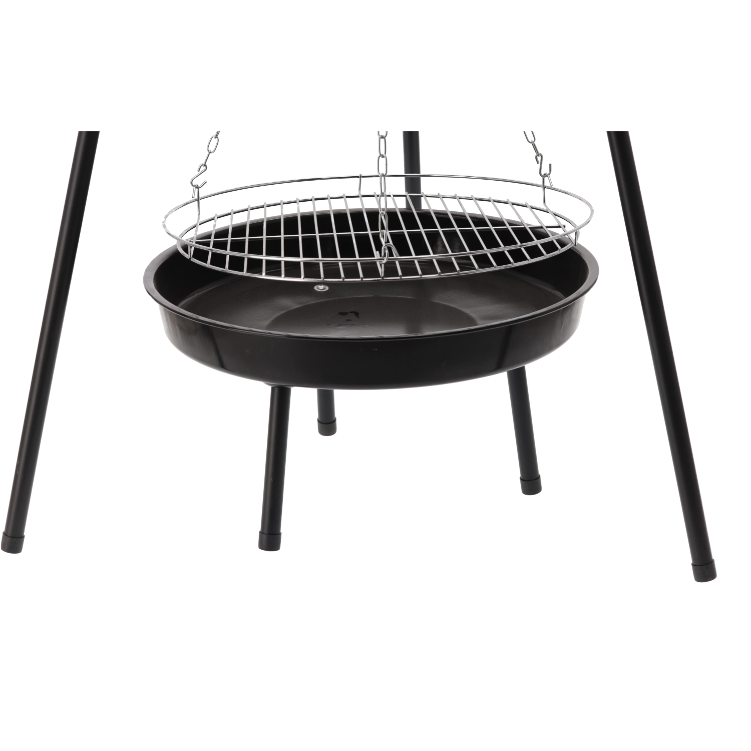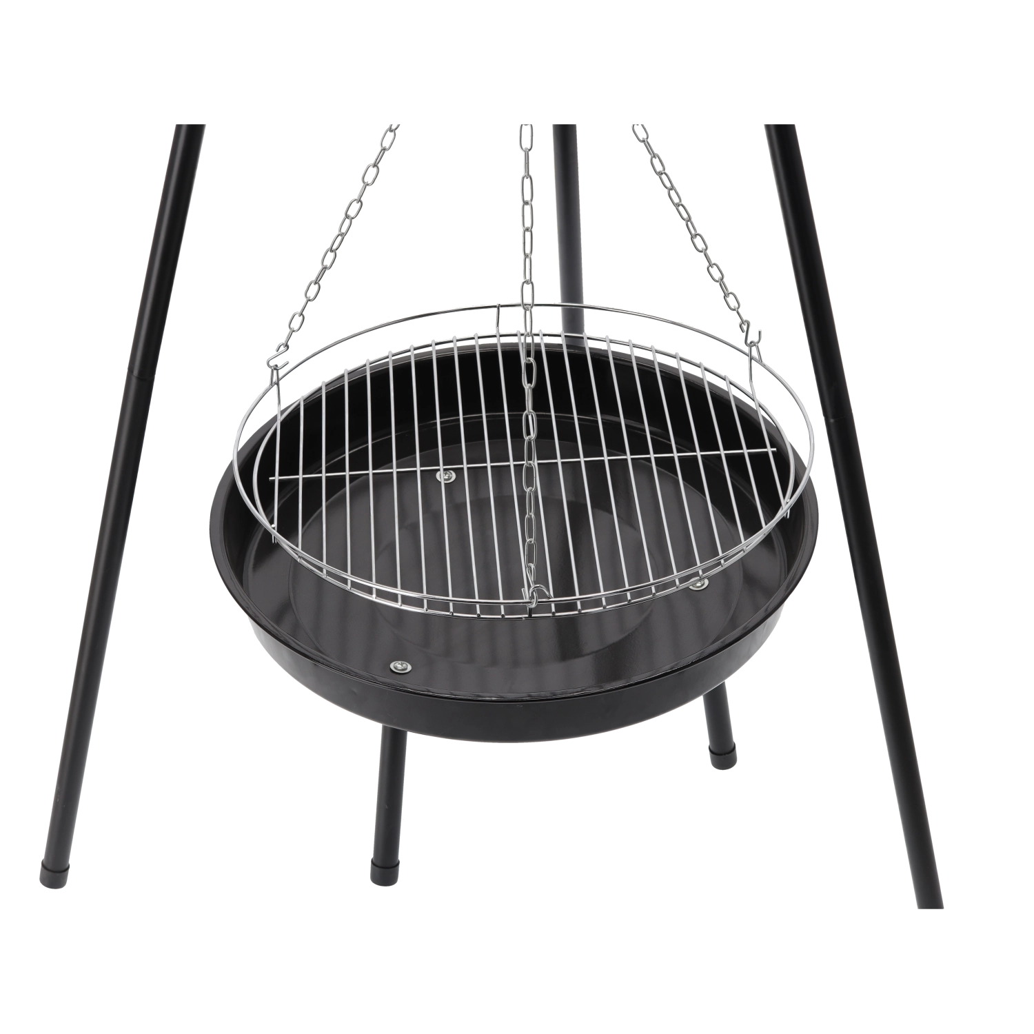 Drie stalen poten bieden zekerheid op diverse ondergronden, terwijl de geëmailleerde schaal met een diameter van 50 cm de warmte vasthoudt en het reinigen na het grillen vergemakkelijkt.