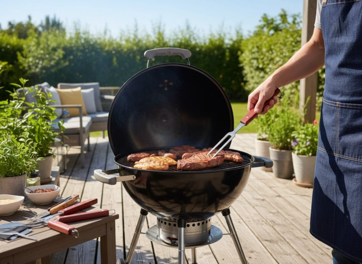 Ergonomische houten handgrepen beschermen de handen tegen warmte en zorgen voor een comfortabele, zekere grip, ook bij langer grillen.