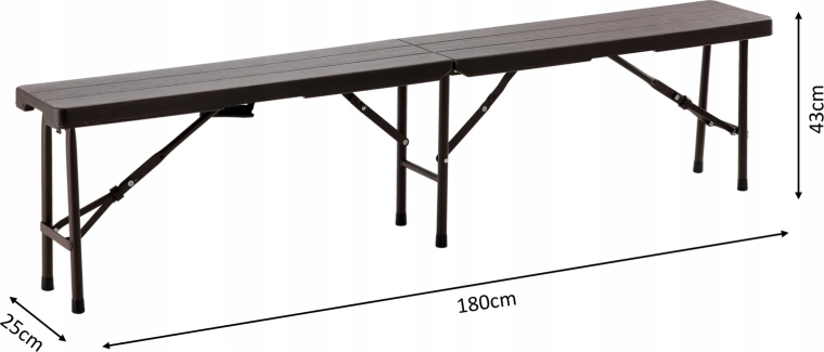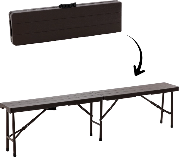Praktische en duurzame opvouwbare bank met een lengte van 180 cm, biedt comfortabel zitplaats voor meerdere personen. Dankzij het stabiele stalen frame, antislip doppen en het gemakkelijk te reinigen HDPE-oppervlak met houtdecor is hij ideaal voor de tuin, picknick, kamperen en evenementen in de open lucht. Het opvouwbare ontwerp met handgreep zorgt voor eenvoudig transport en ruimtebesparing.