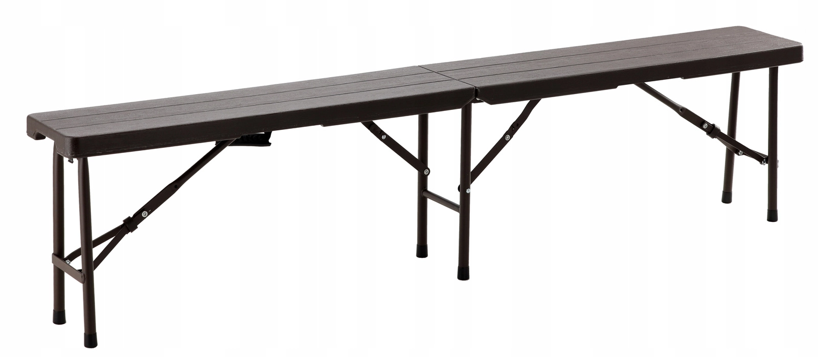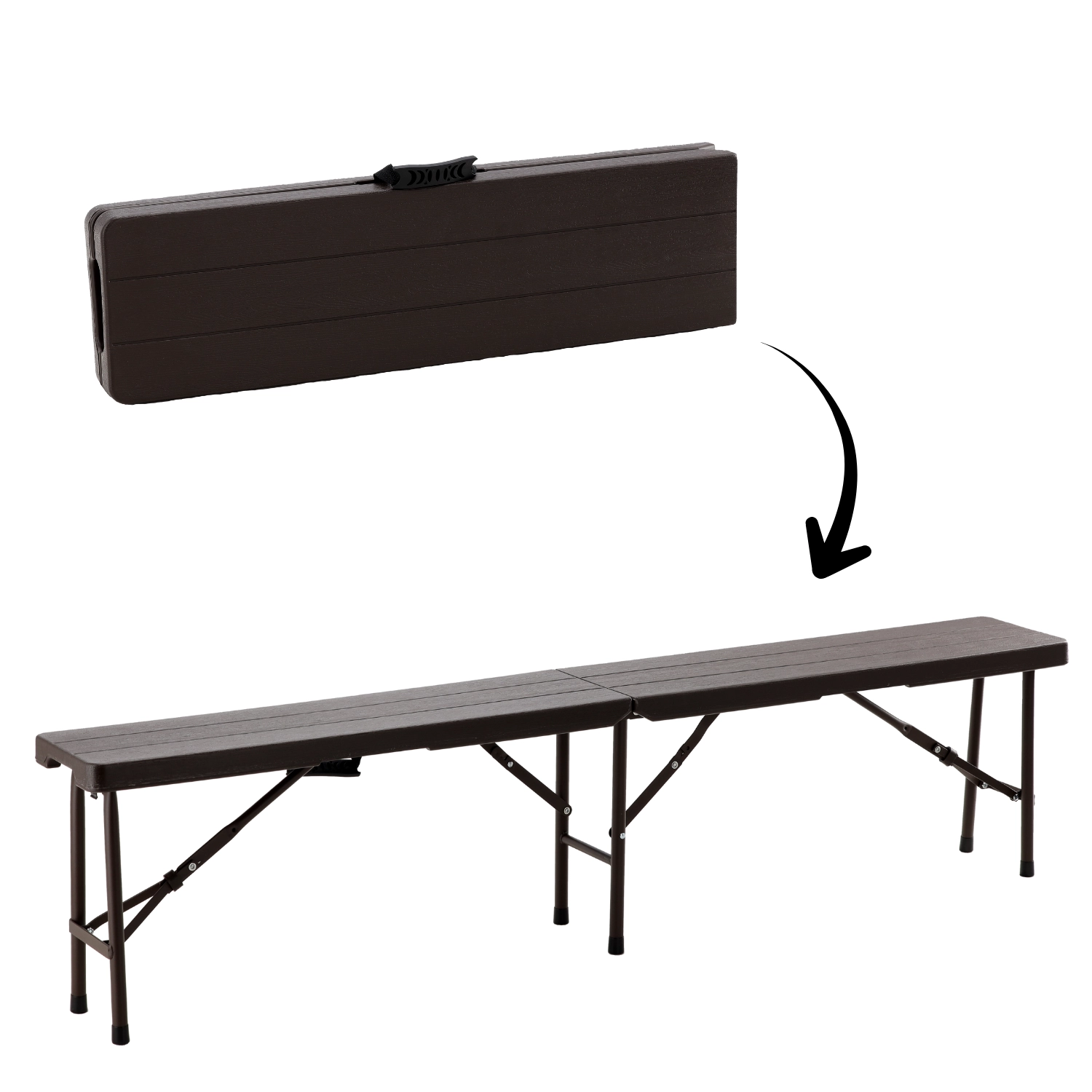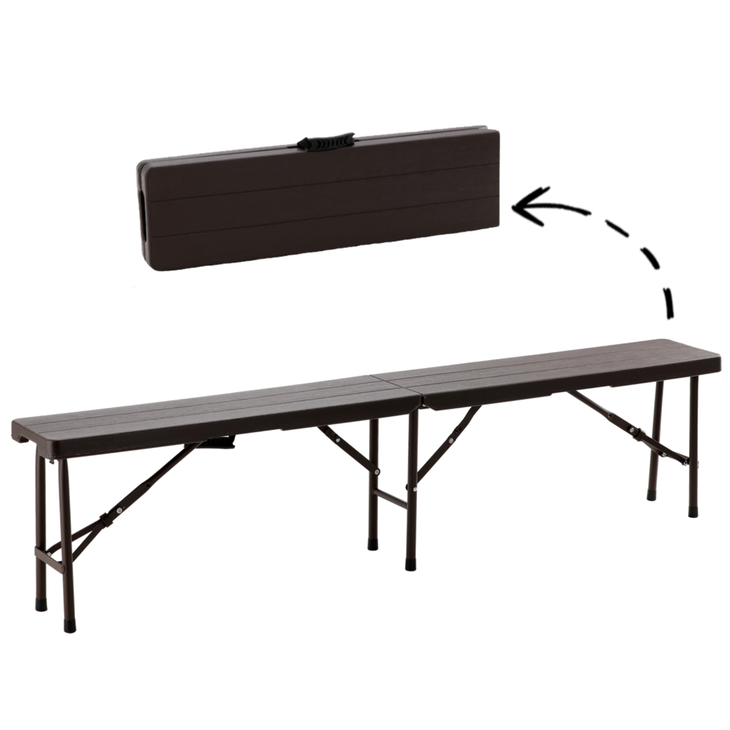 Het robuuste stalen frame met dwarsversteviging zorgt voor stabiliteit, terwijl antislippootjes het oppervlak beschermen en verschuiven voorkomen. De bank vouwt op tot een koffermodel met handgreep, zodat je hem eenvoudig kunt dragen en opbergen in auto of kast.