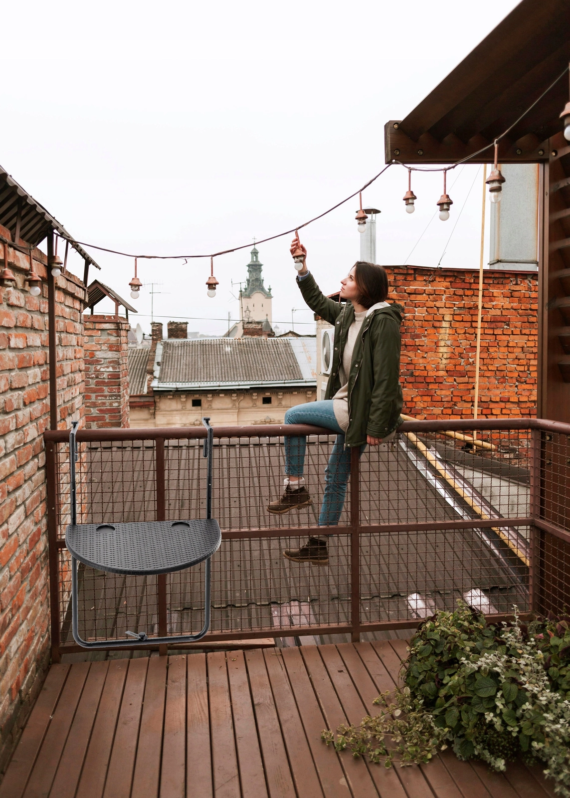 Na gebruik klap je de tafel eenvoudig tegen de balustrade. Ideaal voor kleine balkons waar elke centimeter telt.