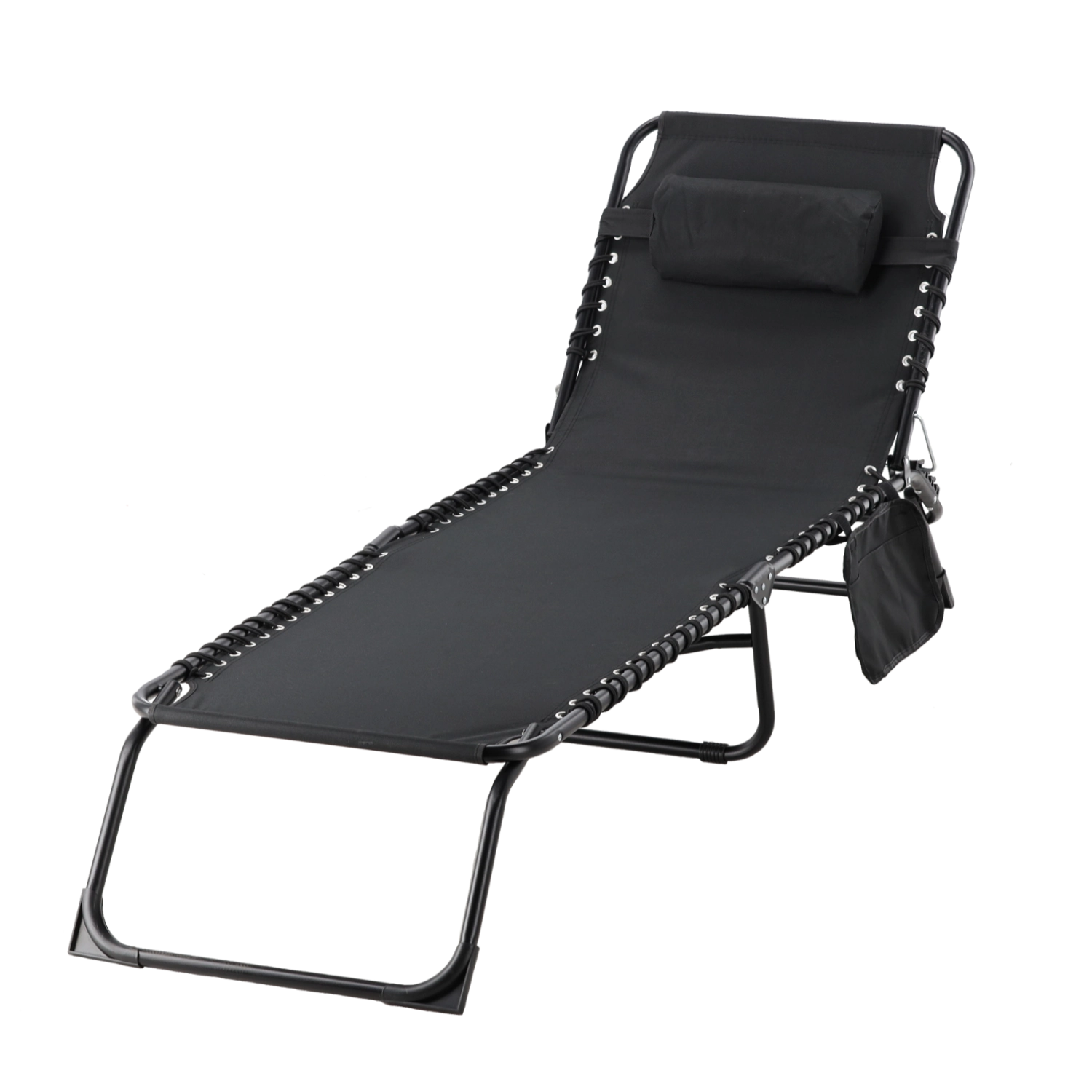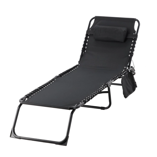 De ligstoel combineert stabiliteit en comfort in een lichte, draagbare vorm. Het robuuste stalen frame met poedercoating zorgt voor een lange levensduur, terwijl de slijtvaste stof ademend en gemakkelijk te reinigen is. Het praktische zijvak houdt je telefoon, boek of zonnebril altijd binnen handbereik.