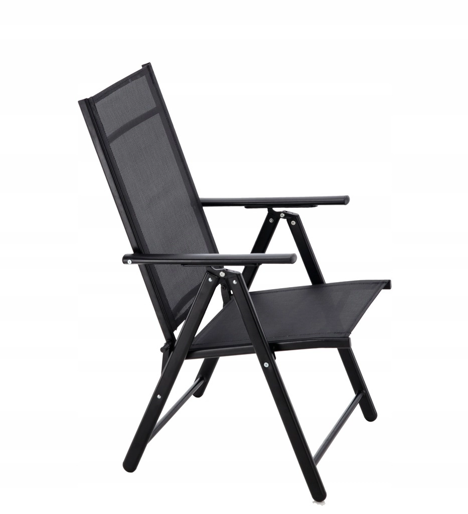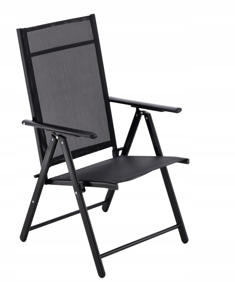 Deze zwarte opvouwbare stoel combineert een modern uiterlijk met praktisch gebruik voor elke dag in de tuin, op het terras en op het balkon. De stabiele stalen constructie met poedercoating weerstaat weersinvloeden, terwijl de textilene mesh comfortabel, sneldrogend en onderhoudsvriendelijk is.
