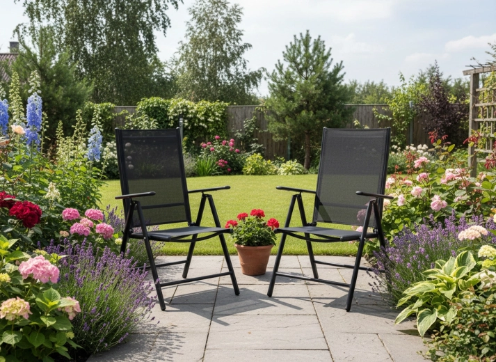 De 2x1 textilene zorgt voor luchtcirculatie, droogt snel en voelt prettig aan – ideaal voor tuin en terras.