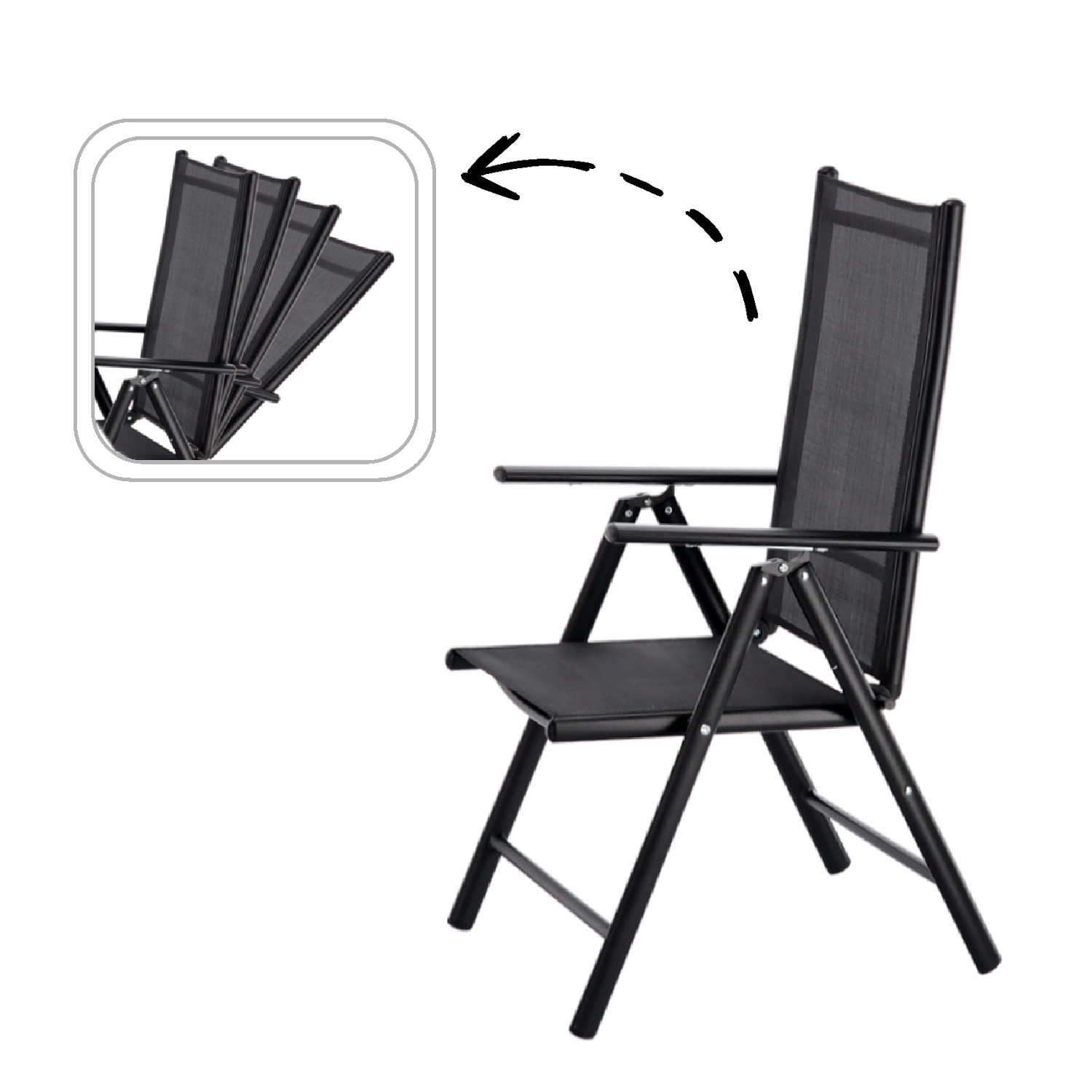 Dankzij 7 standen van de rugleuning schakel je eenvoudig van eetpositie naar relaxen in de zon. De stoel is in een oogwenk opgevouwen, bespaart opslagruimte en is ideaal voor onderweg of bij het zwembad.