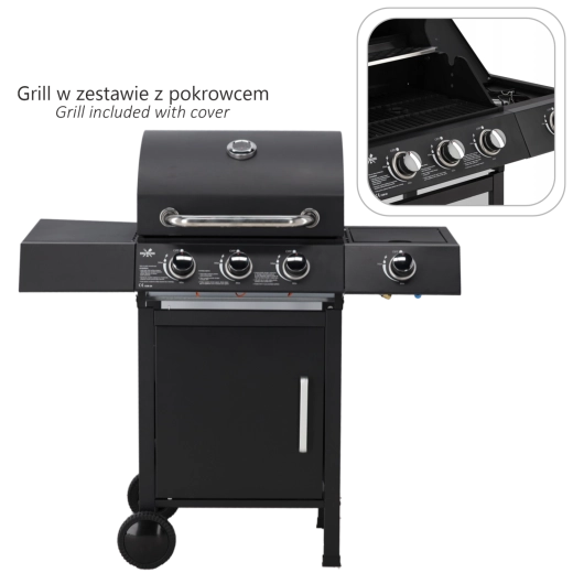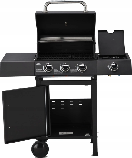 Ontdek het comfort en het vermogen van de gasbarbecue 3+1, die je buitenkoken naar een hoger niveau tilt. Drie onafhankelijke hoofdbranders en een aparte zijbrander laten je sappige steaks, vis en groenten grillen terwijl je tegelijk sauzen of bijgerechten verwarmt. Het royale grilloppervlak van 51,5 × 37,5 cm met geëmailleerde roosters zorgt voor gelijkmatige warmteverdeling en eenvoudig onderhoud.