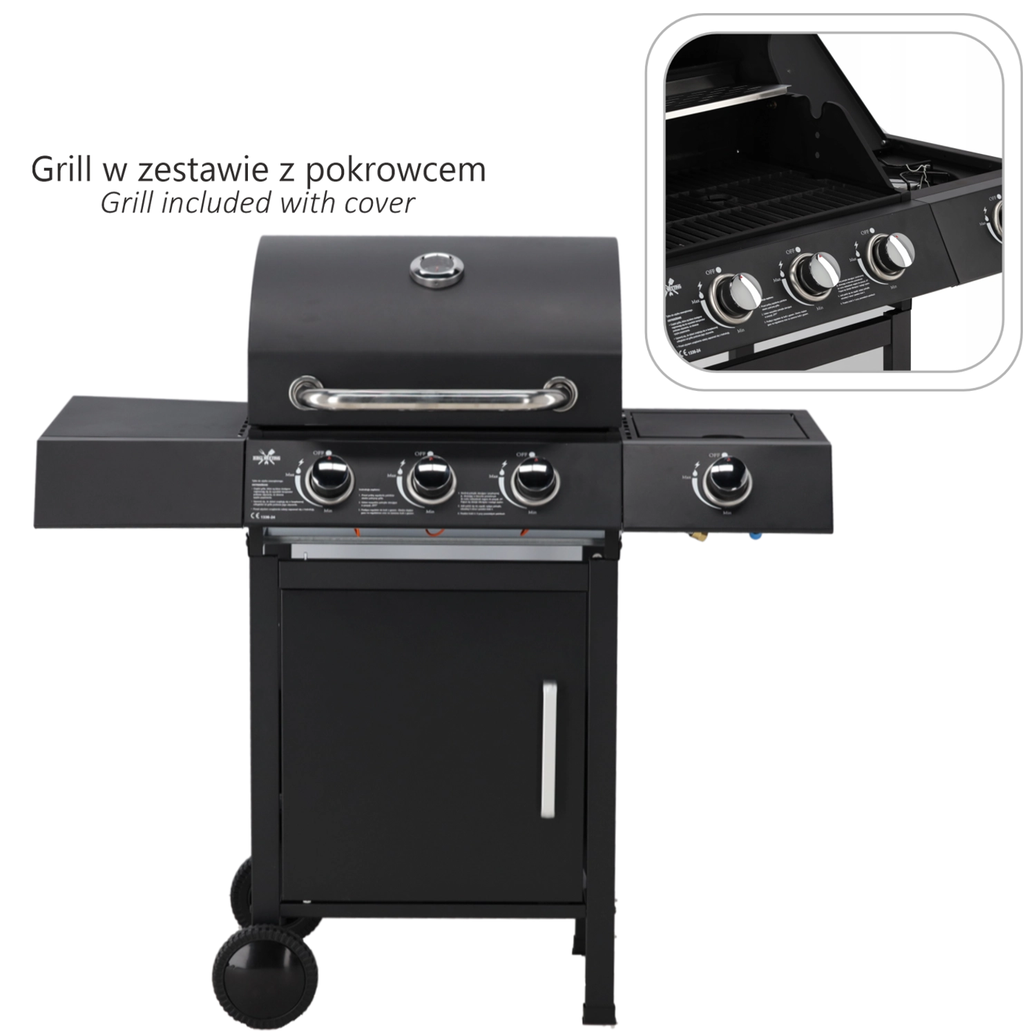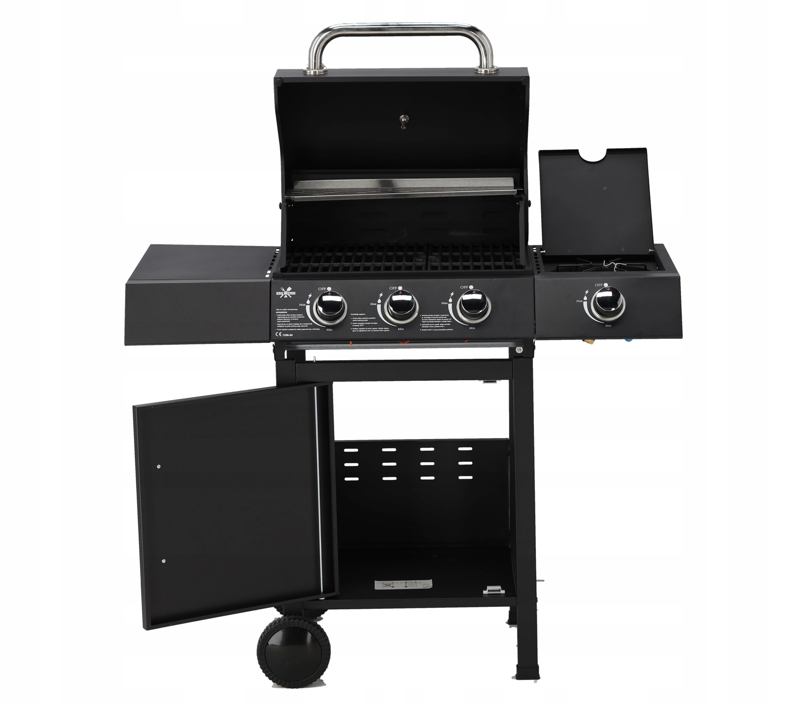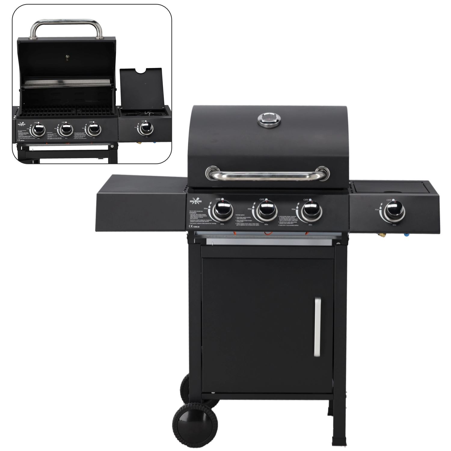- Krachtig en flexibel: 3 hoofdbranders (2,7 kW per stuk) + zijbrander (2,2 kW) voor meerdere gerechten tegelijk.