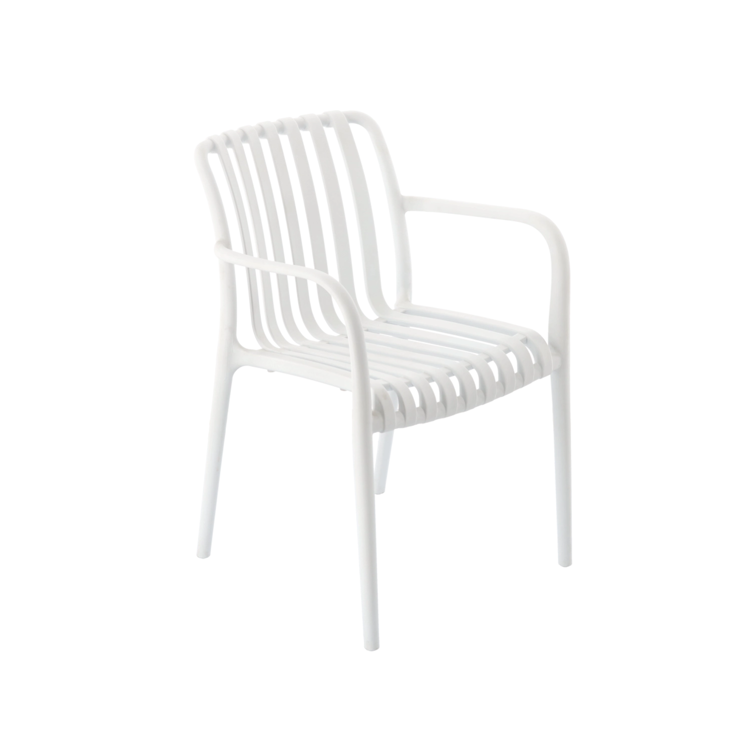 De elegante witte stoel is een ideale keuze voor balkon, terras en tuin. De neutrale kleur en tijdloze vormgeving passen moeiteloos bij zowel modern als klassiek meubilair. Het materiaal met UV-bescherming weerstaat zon en wisselende weersomstandigheden en behoudt langdurig zijn aantrekkelijke uitstraling.