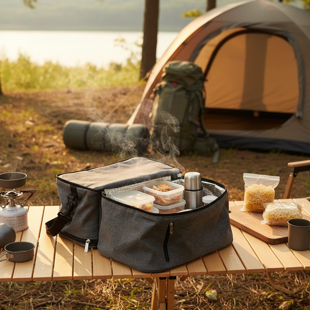 De reflecterende thermische voering houdt eten en drinken langer koel of warm. Ideaal voor picknicks, kamperen en dagelijkse lunches.