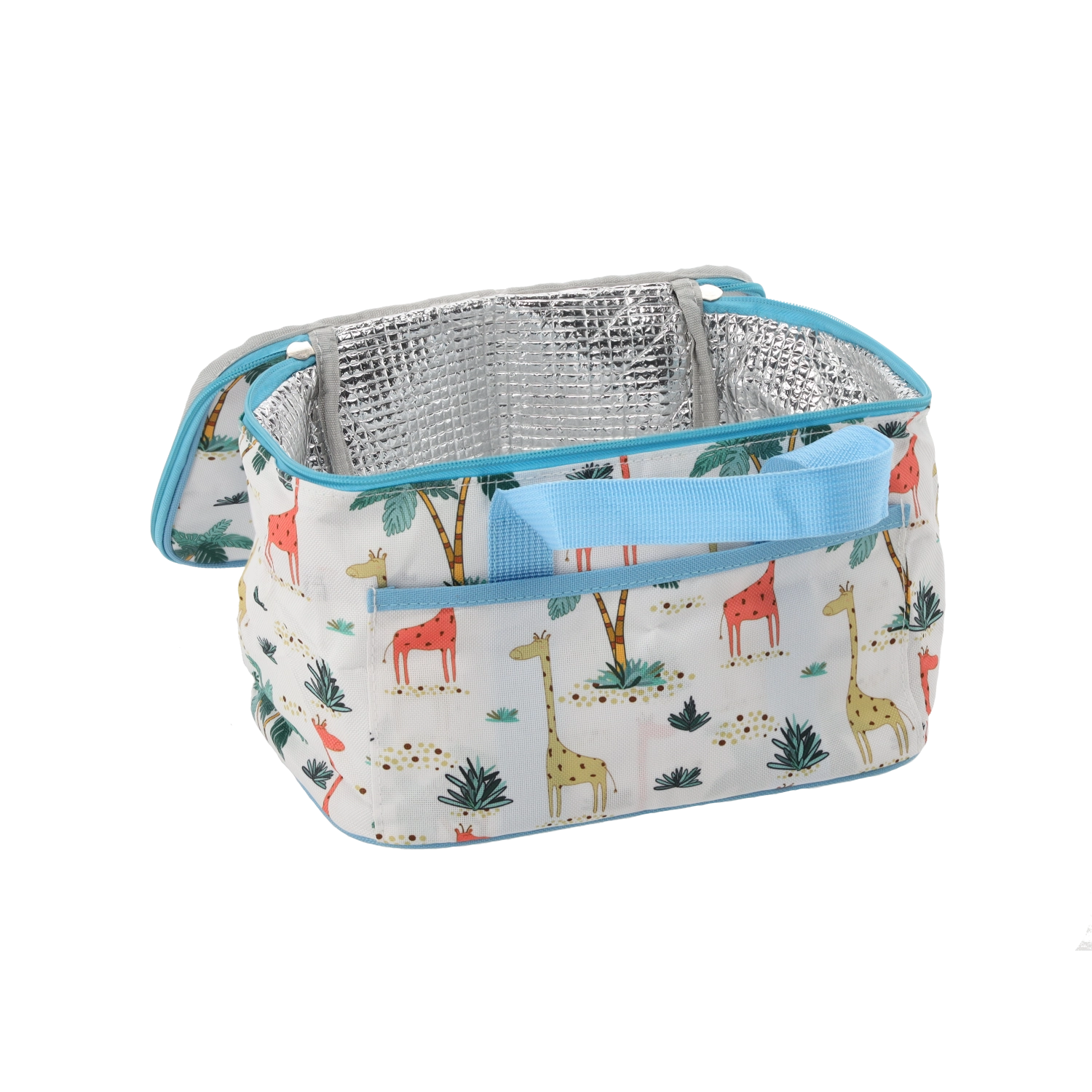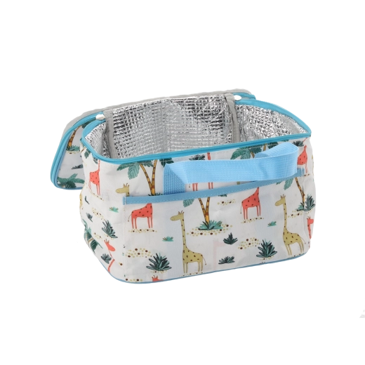 De aluminiumfolie aan de binnenkant reflecteert de temperatuur en houdt samen met het PE-schuim de inhoud langer koud of warm. De tas heeft een ritssluiting, een handig voorvak en stevige handvatten voor comfortabel dragen naar picknick, kantoor en tijdens uitstapjes.