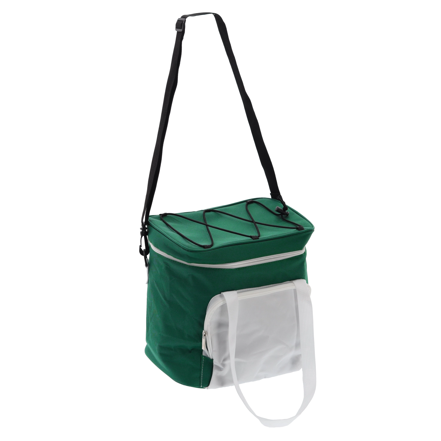 Praktische en stijlvolle koeltas met een inhoud van 14 l houdt je etenswaren en drankjes lang vers. Dankzij twee koelelementen en hoogwaardige isolatie is hij ideaal voor picknicks, strand, uitstapjes en boodschappen. Het moderne groen-witte design valt meteen op en de compacte afmetingen zorgen voor comfortabel dragen.