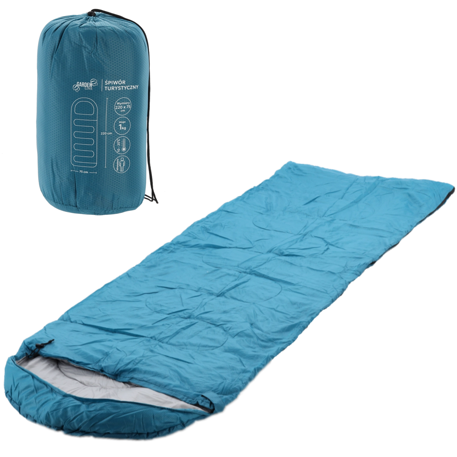 Lichte en comfortabele toeristische slaapzak in donkerblauw voor kamperen, uitstapjes en overnachtingen onderweg. Biedt een waterafstotende stof, zachte voering, verstelbare capuchon en een praktische draagzak voor eenvoudig transport. Dankzij de lengte van 220 cm is hij ook geschikt voor langere personen en zorgt hij voor aangename warmte binnen het bereik van +10 °C tot +25 °C.
