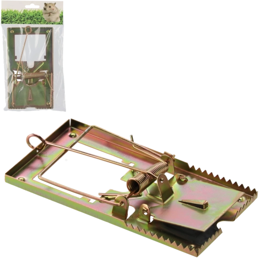 Betrouwbare metalen muizen- en rattenval met een zeer gevoelig veermechanisme voor directe sluiting. Traditionele, duurzame constructie met een sterke veer en een preciese aas-haak zorgt voor snelle en doeltreffende bestrijding van ongedierte. Eenvoudig in gebruik, hoge effectiviteit en lange levensduur.