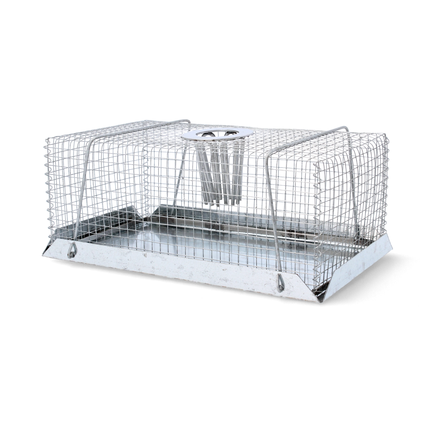 Praktische levend vangende val voor muizen en ratten voor een diervriendelijke vangst zonder verwondingen. Dankzij de slimme constructie met boveningang gaat het dier gemakkelijk naar binnen maar kan het niet ontsnappen. Ideaal voor huishoudens, magazijnen en bedrijfsruimten. Eenvoudige installatie, haak voor lokvoer en duurzame volledig metalen uitvoering voor een lange levensduur en betrouwbare prestaties.
