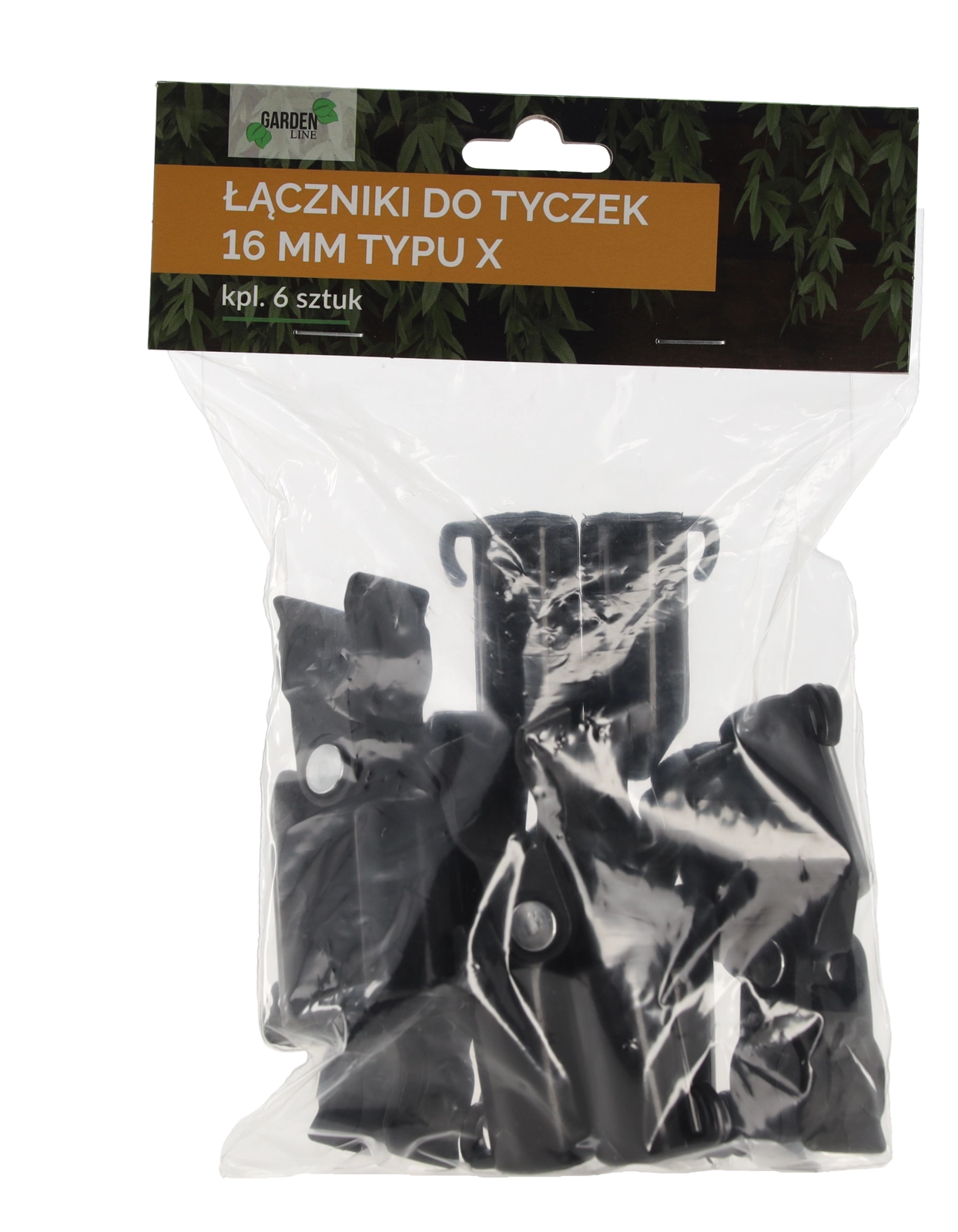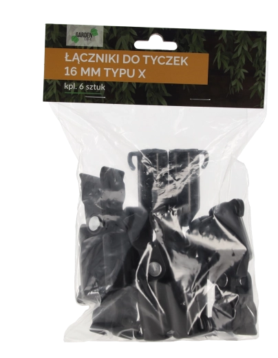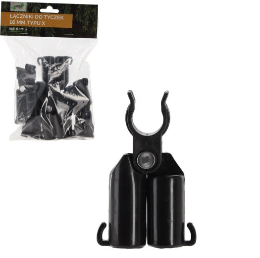 Praktische set van 6 kruisverbinders voor palen met een diameter van 16 mm, waarmee u snel een stabiel frame en steunkonstrukties voor klimplanten kunt maken. Ideaal voor bonen, erwten en andere groente die ondersteuning nodig heeft.