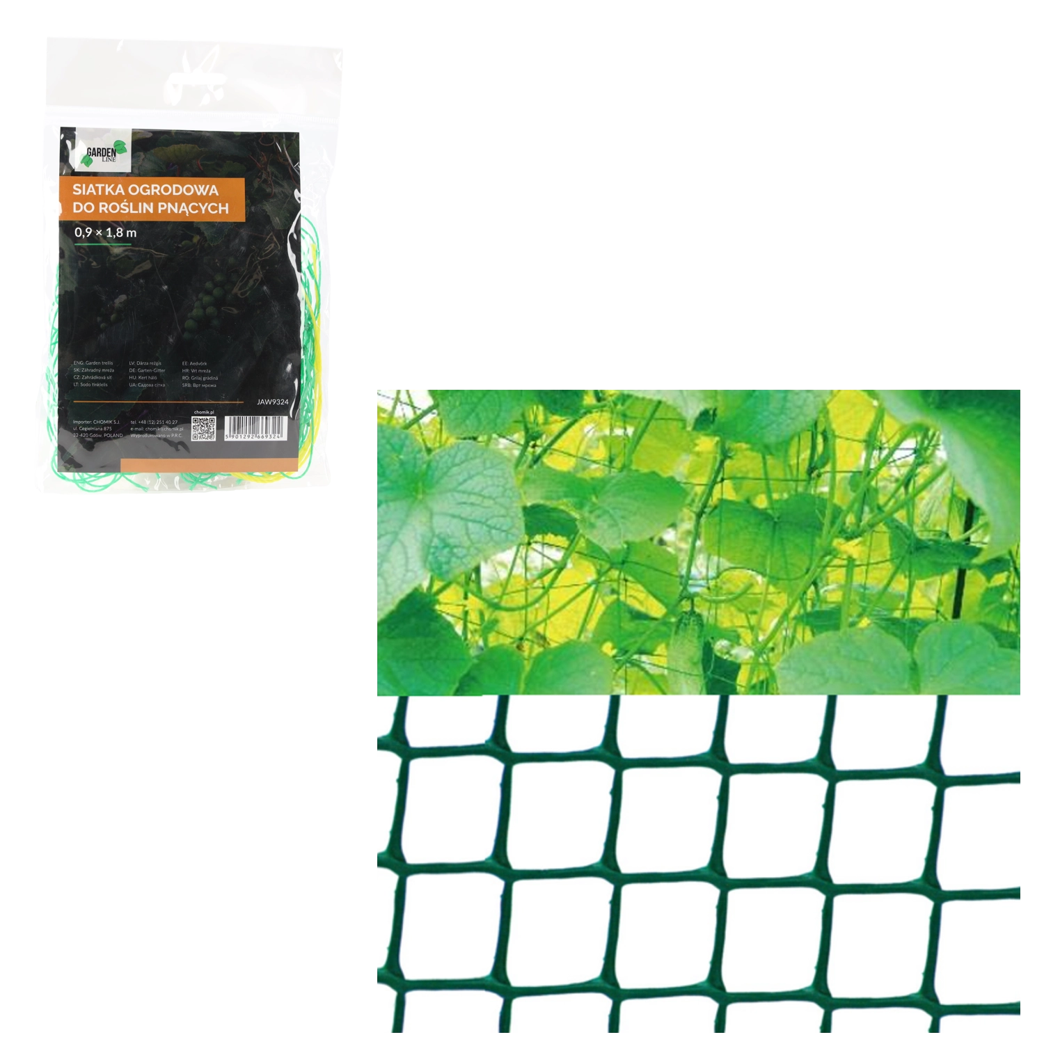 Het net kan verticaal of boven het hoofd worden gespannen voor verschillende soorten klimplanten en om ruimte te besparen.
