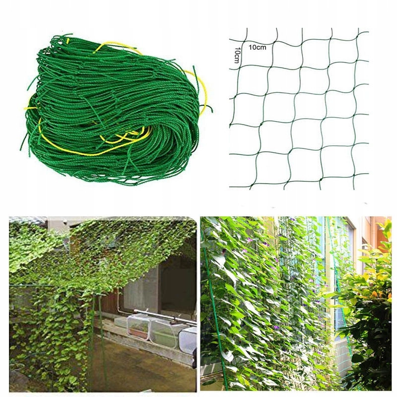 Duurzaam tuinnet voor klimplanten van UV-gestabiliseerd polypropyleen zorgt voor veilige geleiding omhoog en ruimtebesparing. Dankzij de grote mazen en stevige constructie bevordert het een betere luchtcirculatie, gezondere groei en gemakkelijker oogsten. Ideaal voor komkommers, bonen en erwten. UV-bestendig, sterk en flexibel, eenvoudige installatie en herbruikbaar.