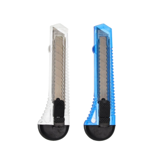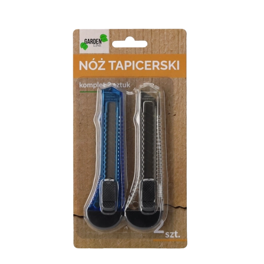 Praktische set van twee stoffeermessen van 15 cm, gemaakt van hoogwaardige kunststof voor dagelijks gebruik. Bieden een veilige vergrendeling van het mes, eenvoudige vervanging van de snijbladen en gemakkelijke bediening – een ideale keuze voor werkplaats, huishouden en hobbyprojecten.