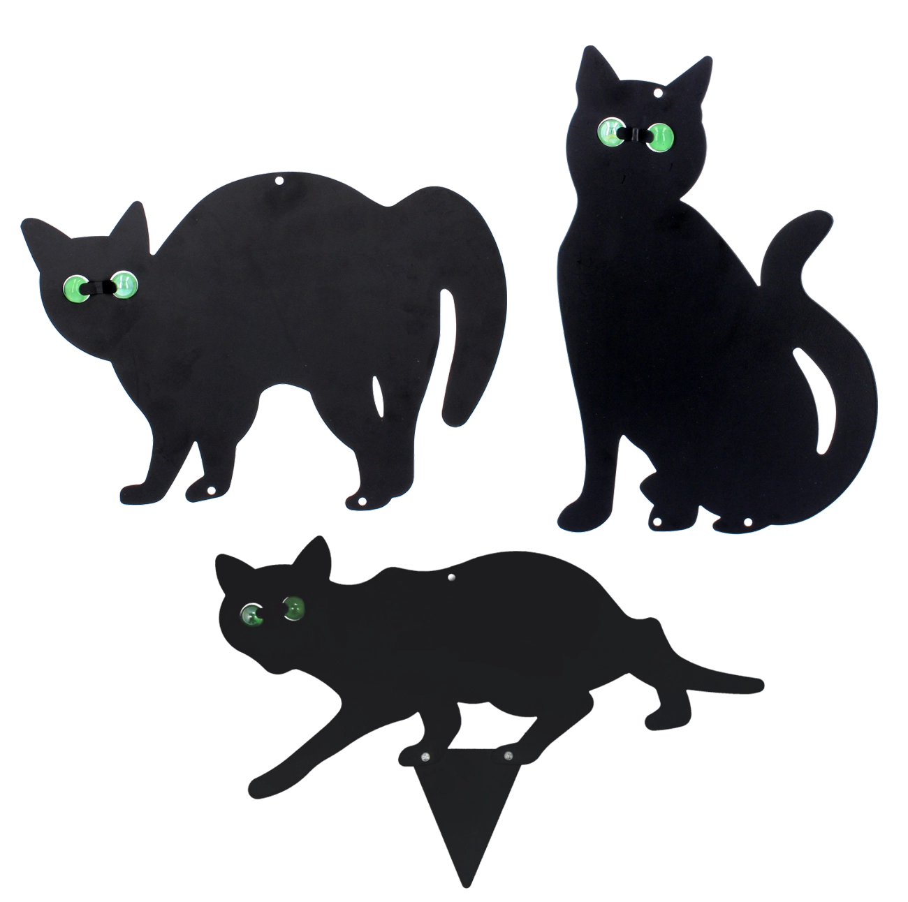 Een esthetische en functionele accessoire voor buitenruimtes. De decoratieve kat bootst een natuurlijke predator na, waardoor vogels en knaagdieren je zaailingen en oogst liever mijden. De glazen ogen creëren schitteringen in de zon en draaien bij wind, wat het visuele afschrikeffect vergroot zonder chemicaliën.