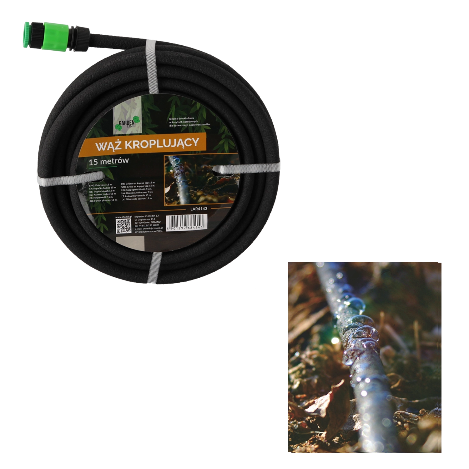 Maak van bewatering een slimme en zuinige routine. De druppelslang geeft water langzaam en gelijkmatig direct aan de wortels, waardoor verdamping en verspilling worden geminimaliseerd en optimale vochtigheid wordt gegarandeerd voor borders, groentetuinen, kassen en sierperken.