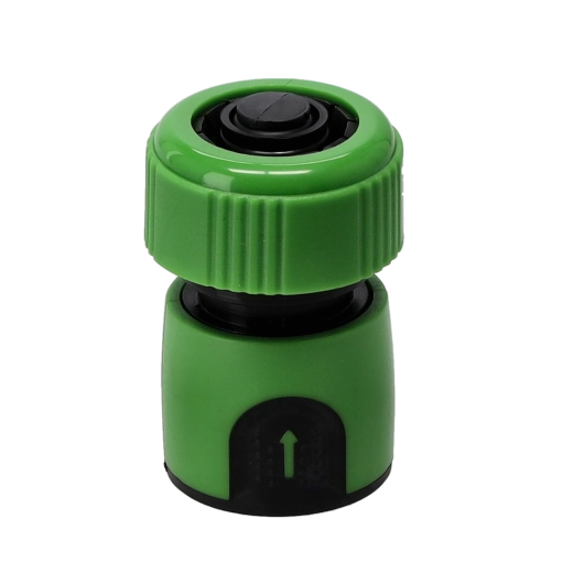 Universele 3/4" snelkoppeling van duurzaam kunststof voor het eenvoudig aansluiten van een tuinslang op kraan, sproeier of spuitpistool. De geïntegreerde STOP-functie maakt het mogelijk accessoires te wisselen zonder de watertoevoer af te sluiten, terwijl het anti-slip TPE-oppervlak zorgt voor een zekere grip en comfortabele bediening.