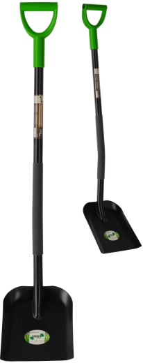 Ideaal voor tuinwerk, terreinbewerking en het opruimen van bouwplaatsen. De antislip-eindkap verhoogt de veiligheid, ook in vochtige omstandigheden, terwijl de rechte, brede bladvorm het scheppen en nauwkeurig storten van materiaal vergemakkelijkt.