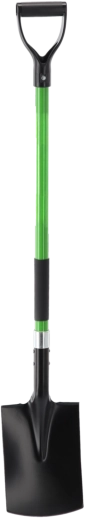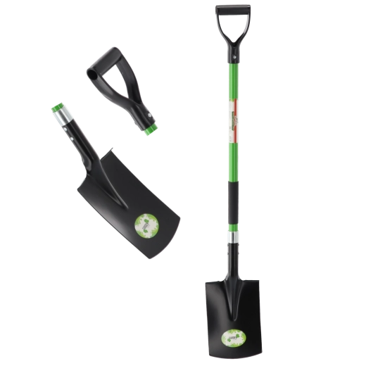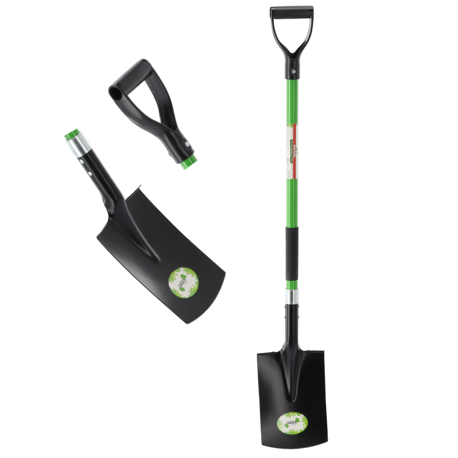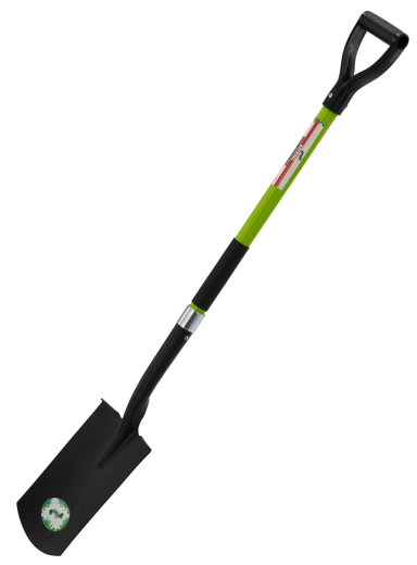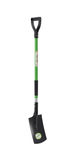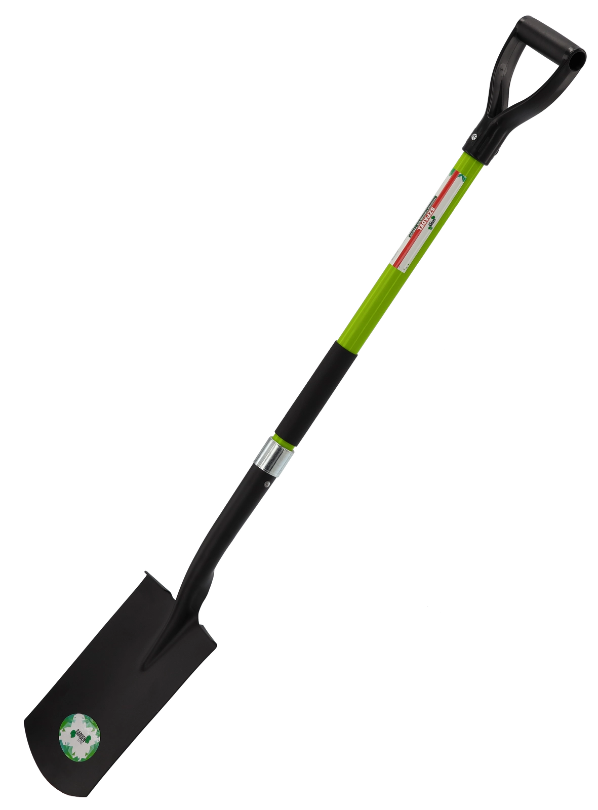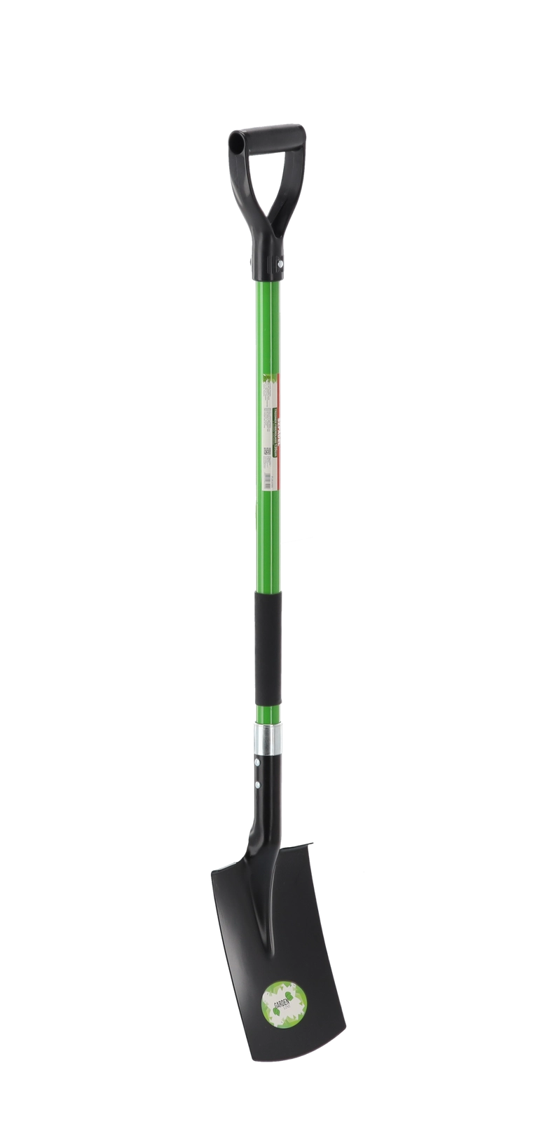 Duurzame en comfortabele spade met een fiberglas steel van 120 cm voor tuin en bouw. Dankzij het scherpe blad dringt hij gemakkelijk door gazon en wortels; de ergonomische, antislip greep zorgt voor zekerheid en comfort. De slijtvaste, poedergecoate stalen kop en de weerbestendigheid garanderen een lange levensduur.