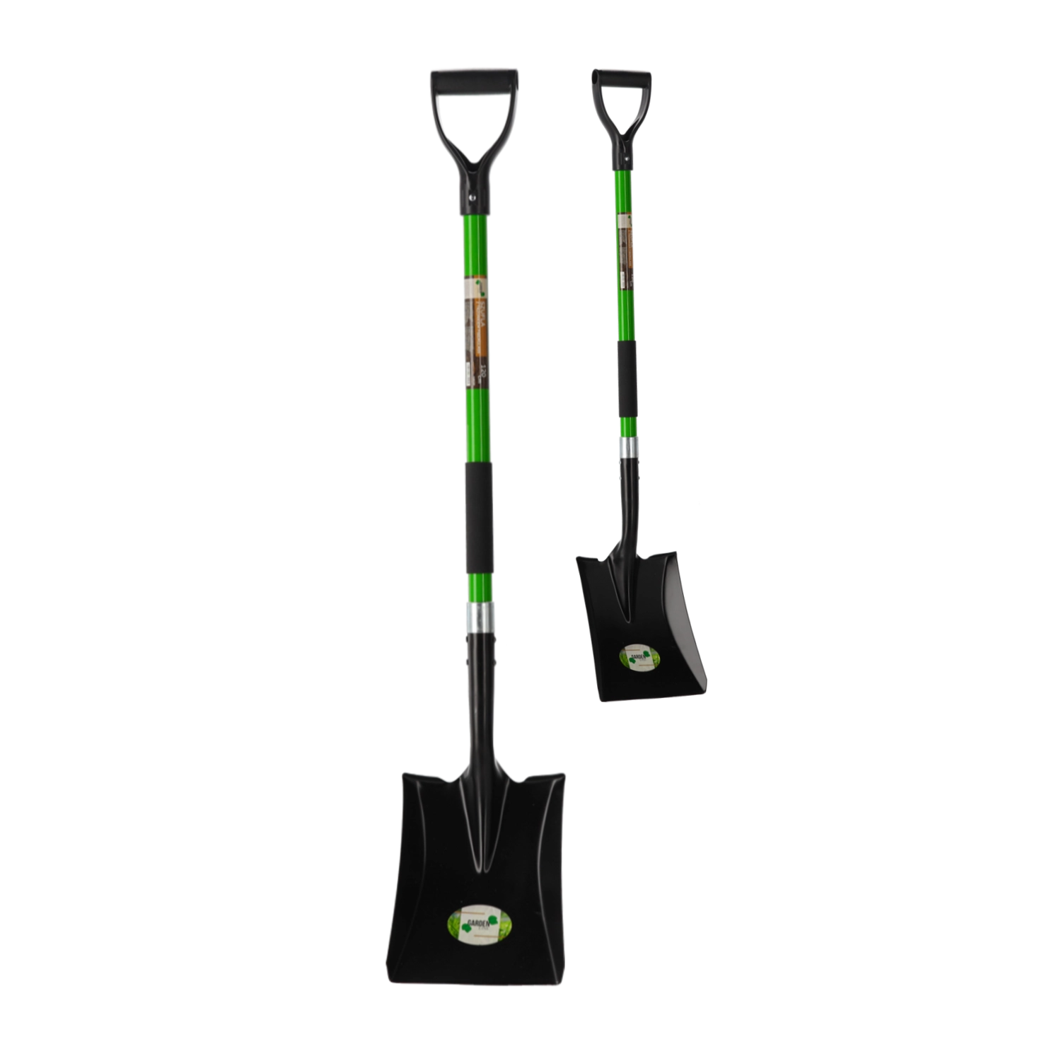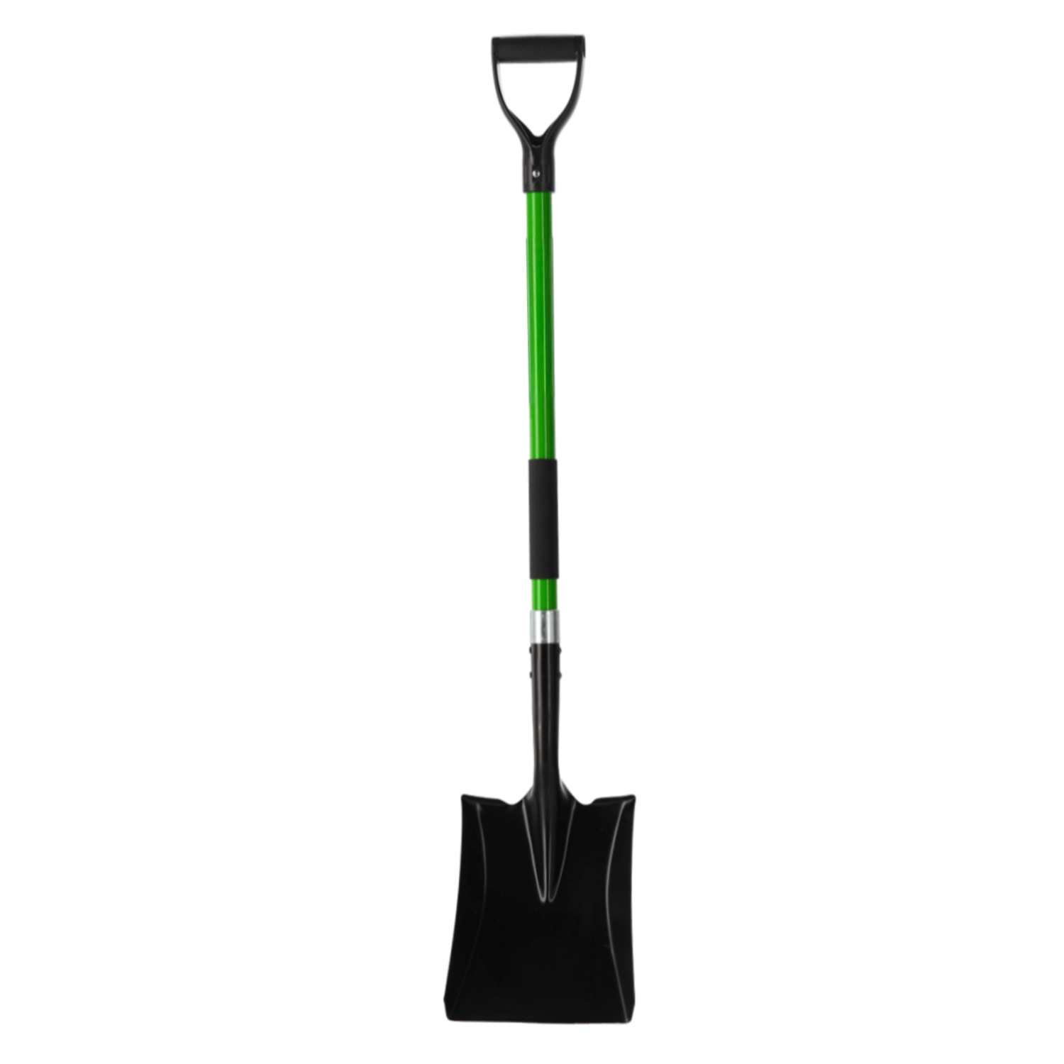 Deze robuuste schep met vlak, vierkant blad is ontworpen voor efficiënt scheppen en verplaatsen van stortgoederen. Poedergecoat staal weerstaat corrosie en zwaar gebruik, terwijl de glasvezel (fiberglass) steel het gewicht verlaagt en het werkcomfort verhoogt.