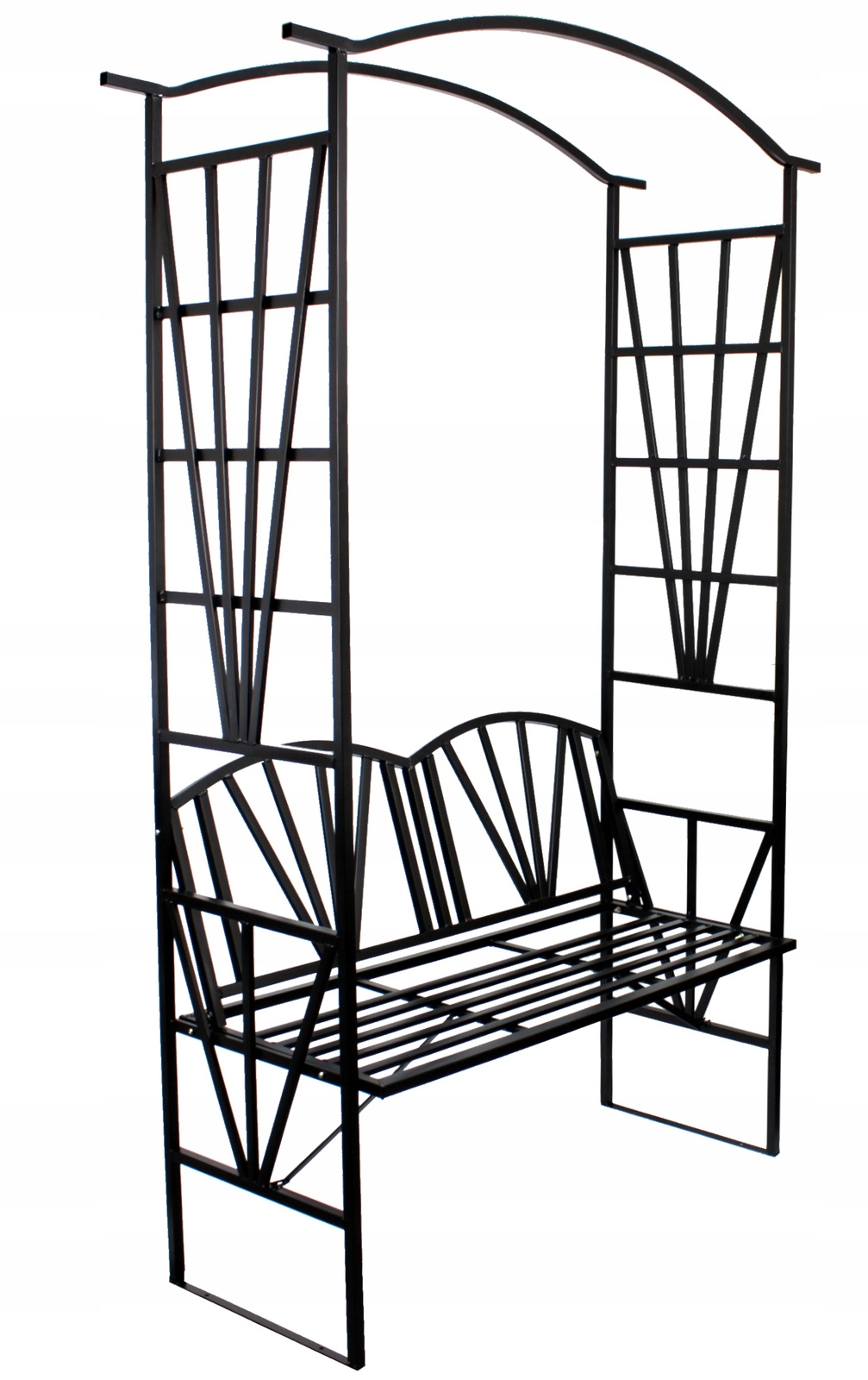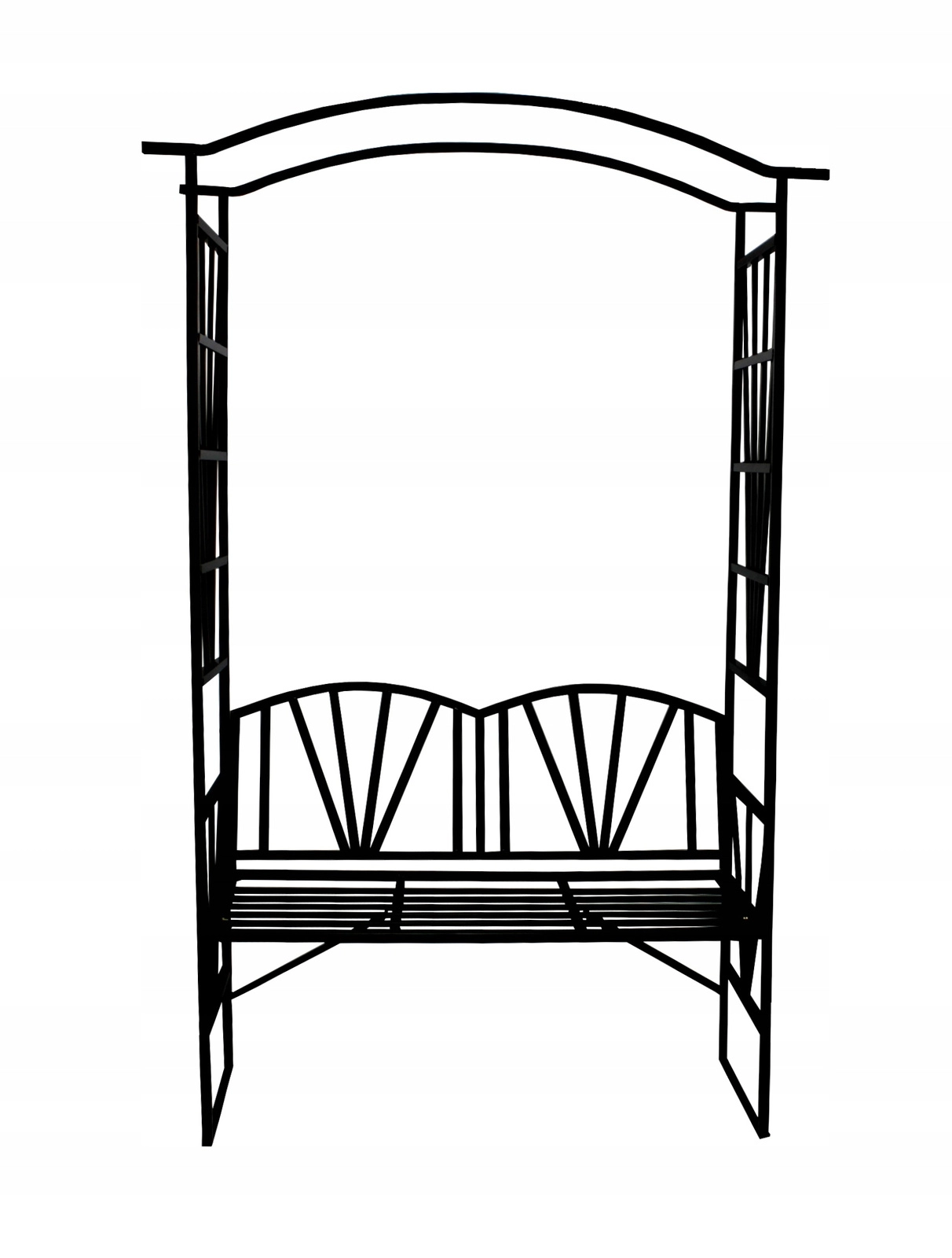 Deze stijlvolle pergola met gebogen bovenkant en geïntegreerd bankje biedt comfortabele zitruimte voor twee personen en tegelijk betrouwbare steun voor rozen, clematissen of kamperfoelie. De zwarte poedercoating beschermt het metalen frame tegen corrosie en maakt het onderhoud eenvoudig. Ideaal voor tuinen, terrassen en binnenplaatsen waar u esthetiek en functionaliteit wilt combineren.