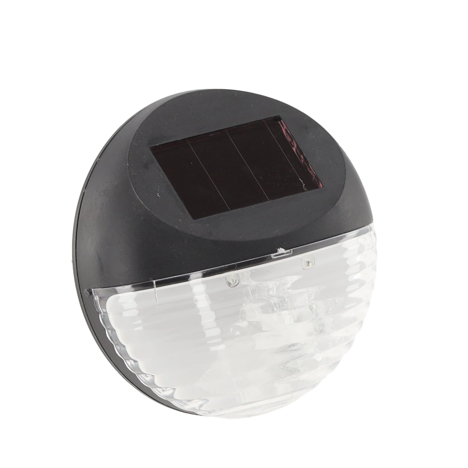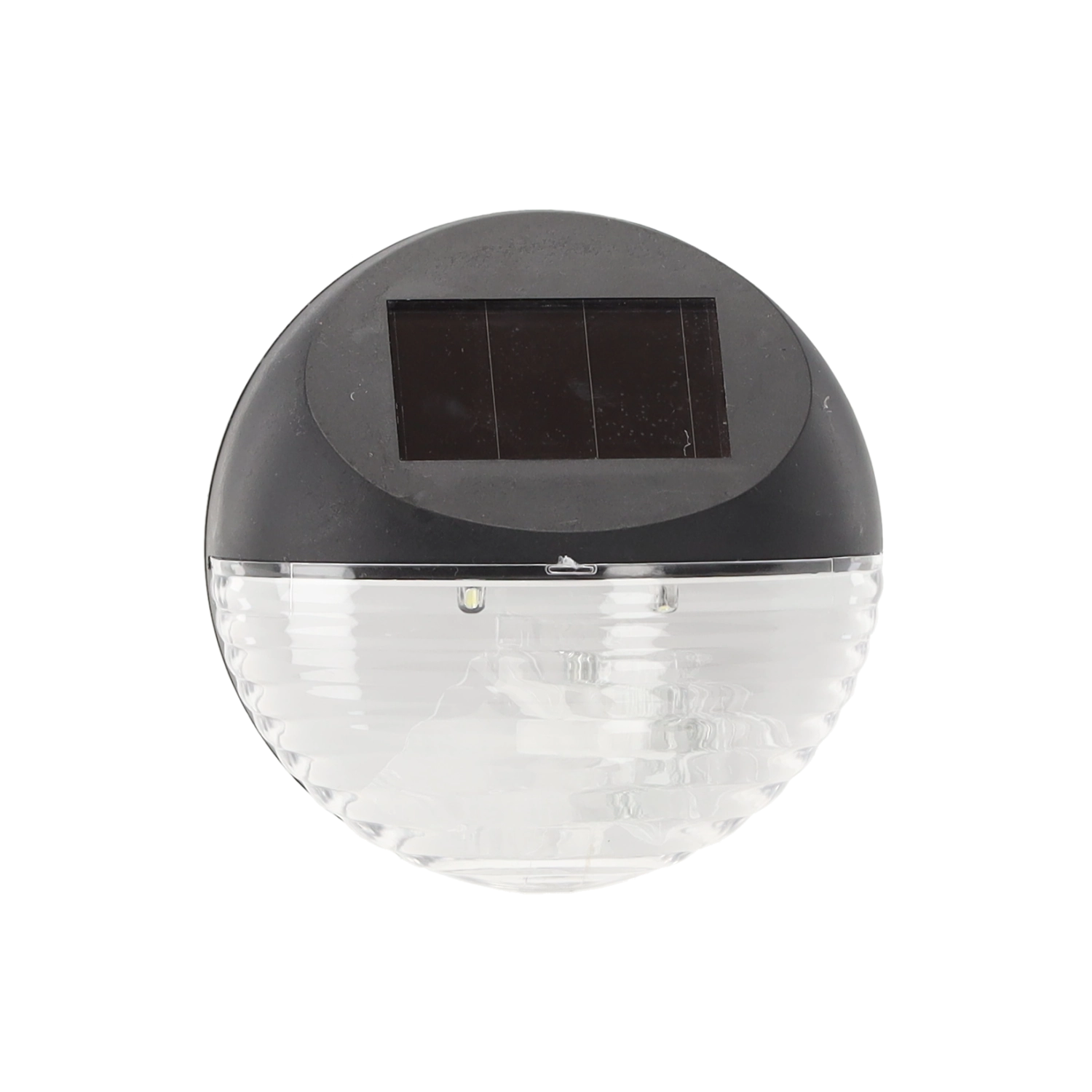 Stijlvolle zonne-LED-lamp met zwarte behuizing en geribbelde diffuser voor sfeervolle oriëntatieverlichting rond huis en tuin. Installatie is eenvoudig en zonder bekabeling – kies een plek met toegang tot zonlicht. Het licht laadt automatisch op gedurende de dag en gaat vanzelf aan bij schemering.