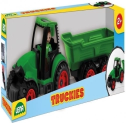 De tractor met aanhanger uit de Truckies-lijn maakt kleine bouwers en boeren blij. Dankzij de stevige constructie en volledig mechanische bediening beleven kinderen authentiek speelplezier zonder batterijen – het kantelen van de bak, het aan- en afkoppelen van de aanhanger en het rijden met de bestuurdersfiguur.