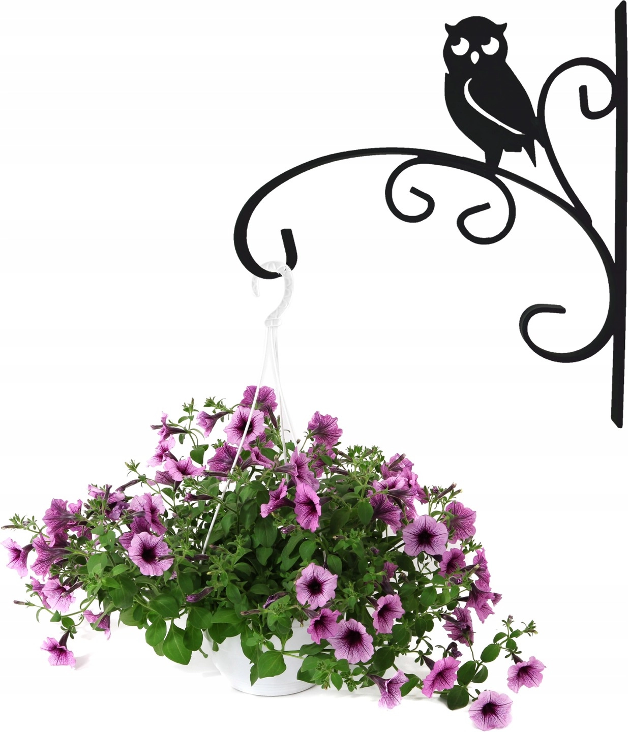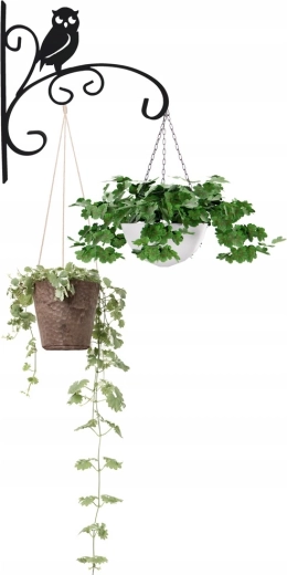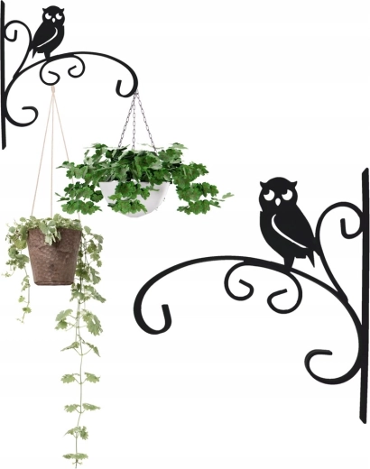 Decoratieve muurhouder voor een bloempot met uilenmotief in elegante zwarte kleur met afmetingen 30 × 28 cm. Dankzij de stevige metalen constructie geschikt voor gebruik binnen en buiten en hij draagt moeiteloos hangende bloempotten, lantaarns of windgongen. Voeg een stijlvolle toets toe aan je balkon, terras of tuin en geniet van een duurzame, praktische en eenvoudig te monteren oplossing voor hangende decoraties.