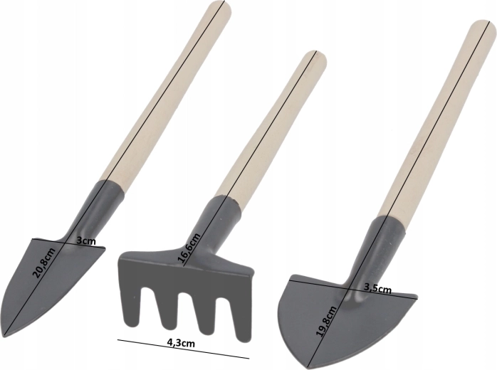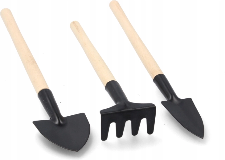 Compacte set van drie handtuingereedschappen voor nauwkeurig zaaien, verplanten en het losmaken van de grond in potten en perken. Duurzame metalen werkdelen en ergonomische houten handgrepen zorgen voor comfort en een lange levensduur. Ideaal voor balkonmoestuinen, kassen en buitenplantenverzorging.