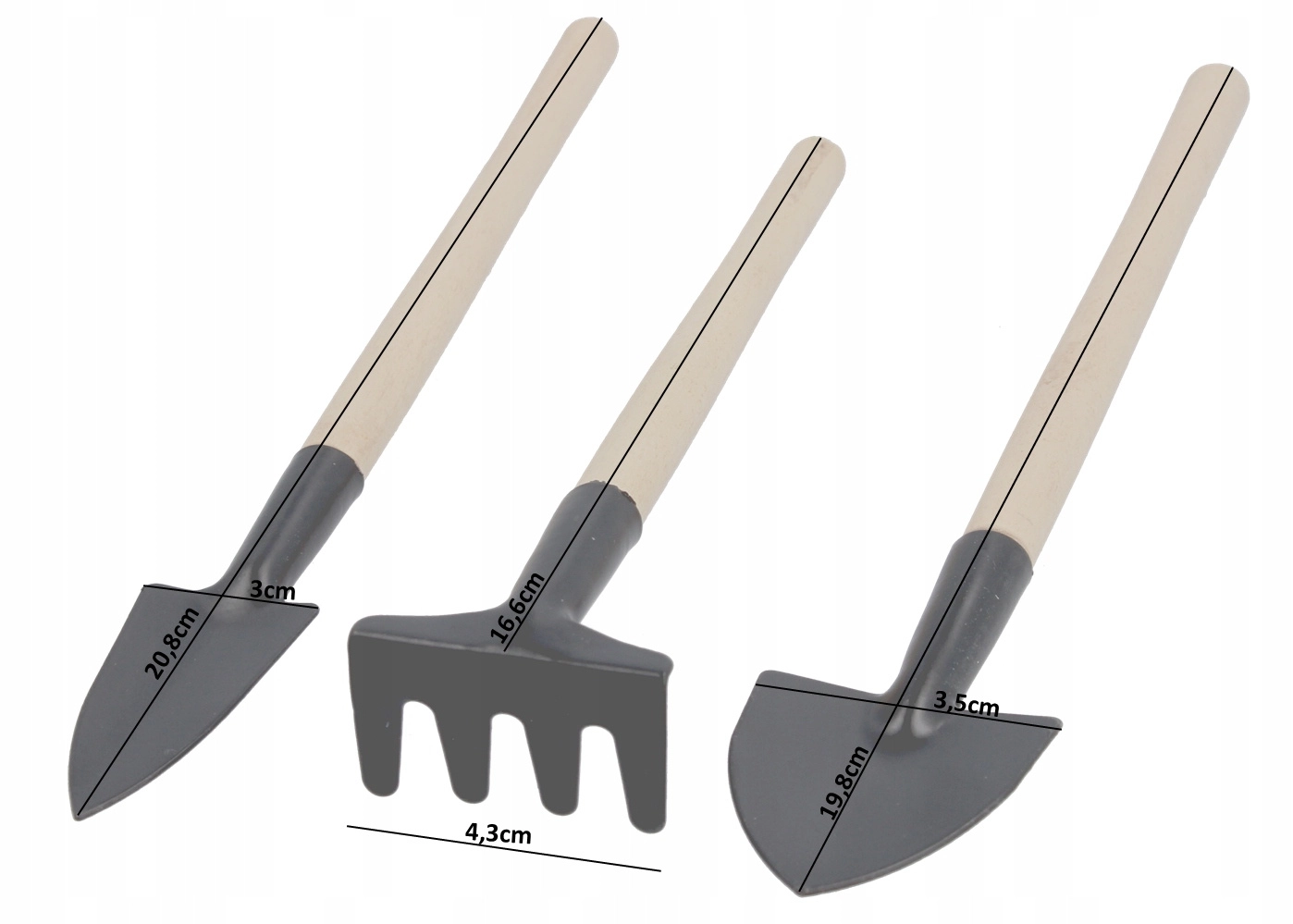 Robuuste stalen koppen kunnen dagelijks werk in de aarde aan, en comfortabele houten handgrepen maken de hantering gemakkelijker, ook bij langdurig gebruik. De set is geschikt voor zowel beginners als ervaren tuiniers die op zoek zijn naar betrouwbaar en compact gereedschap.
